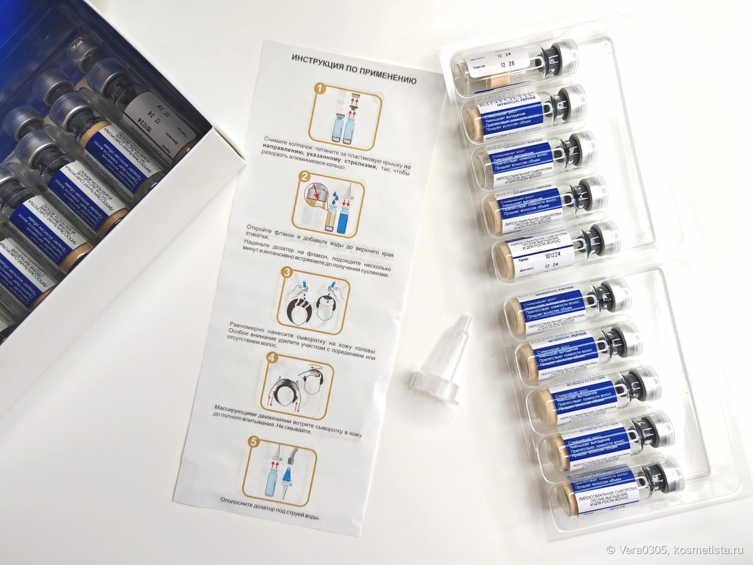 В сыворотке содержится Myristoyl pentapeptide-17, который стимулирует выработку кератина, структурного белка волос. И тем самым способствует росту более плотных, крепких, толстых волос. Дайте два.