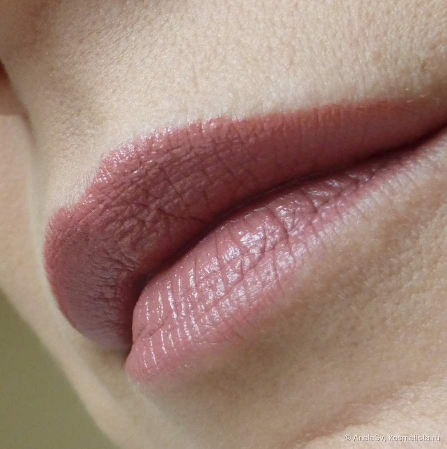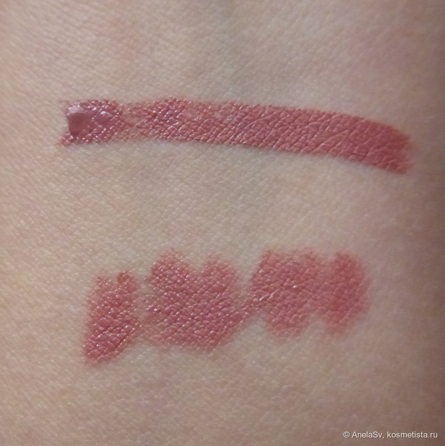 Мой оттенок — Vanessa, холодный розовый. Формат изначально удобен для нанесения, но работать с ним нужно крайне осторожно: текстура у средства очень мягкая. Я однажды уронила карандаш — кончик тут же деформировался и теперь норовит размазывать продукт шире, чем хотелось бы. Отдельный минус — аромат: он напоминает старые классические помады и ощущается на губах, что лично мне не слишком приятно.