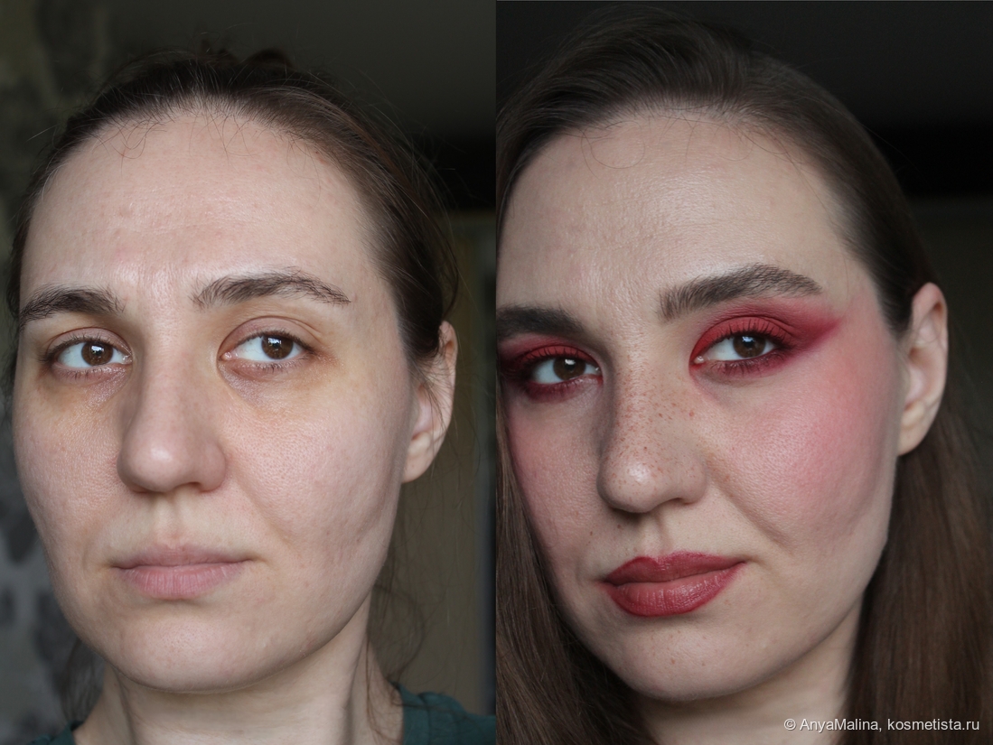 Настолько хорошо нивелирует пигментацию, что даже тянет на себе макияж с алой помадой.