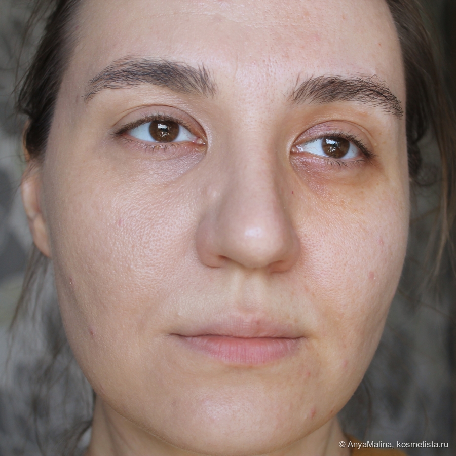 Про обещания производителя хочется пару ласковых вставить: действительно, не забивает поры, правда, освежает образ, без утяжеления и эффекта маски, натуральный, не матовый и не глянцевый финиш.