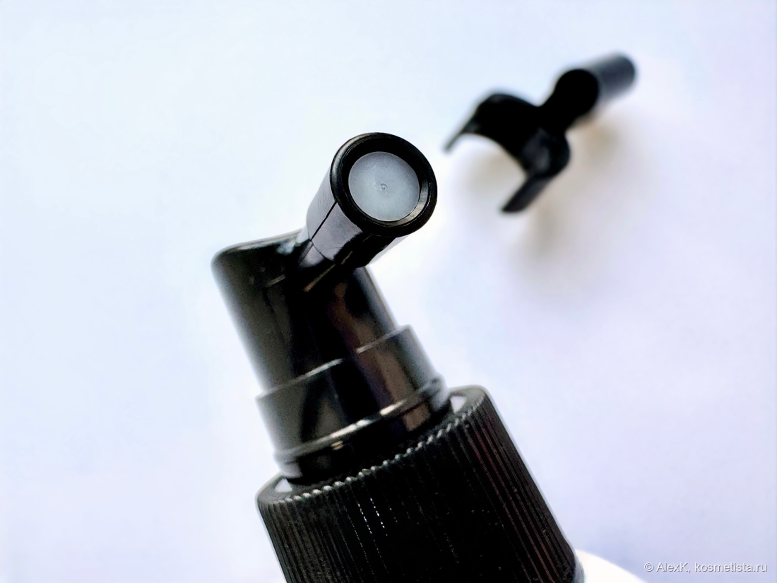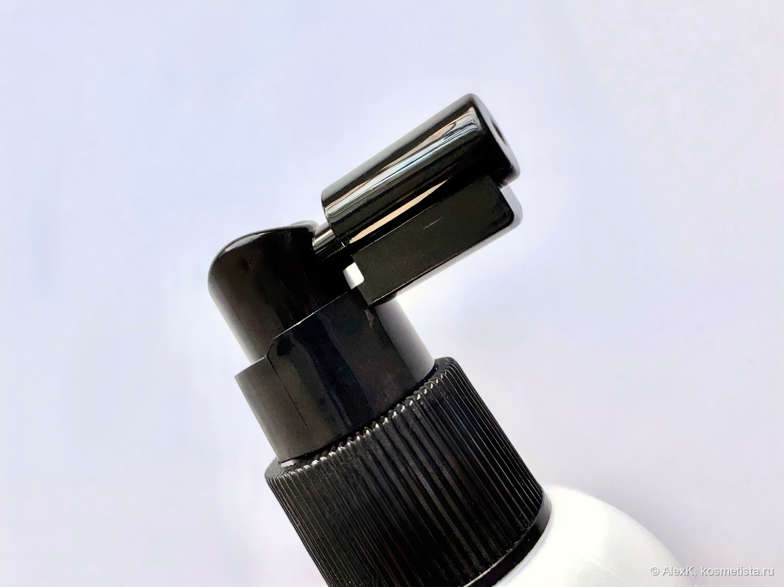 Дозатор — распылитель с носиком. Таким удобно распределять продукт по проборам. Есть блокиратор, чтобы брать спрей с собой: в спортзал, командировку или отпуск.