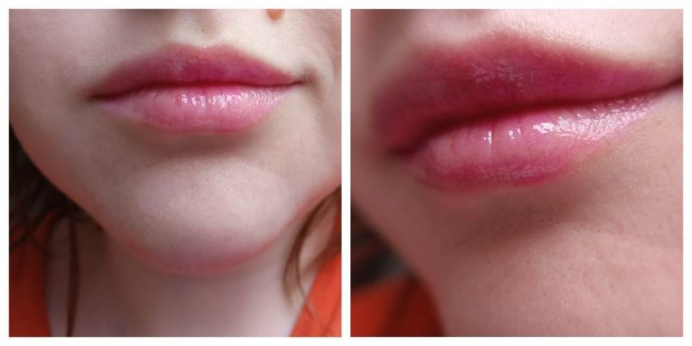 Чаще всего на губах блеск выглядит просто легким и розовым. Мне бы хотелось, чтобы шиммер был более заметен, но его видно только в очень сильном приближении.