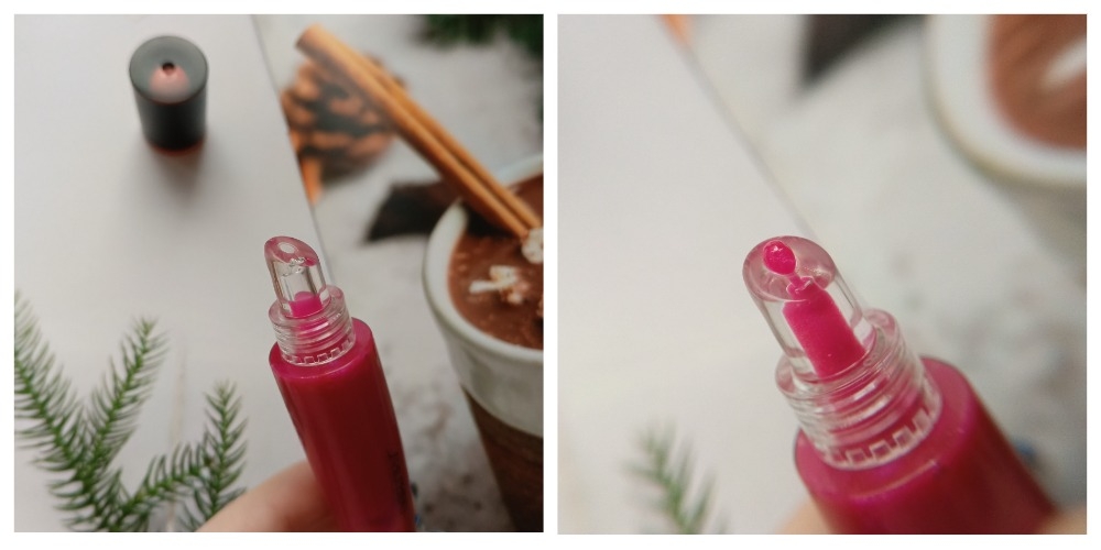 Сам дозатор мягкий, силиконовый. С достаточно широким отверстием. Но распределять им блеск невыносимо. Он ставит пятна, плюется каплями, а блеск тут же утекает обратно в тюбик, если держать его дозатором вверх. Короче пока нанесешь намучаешься.