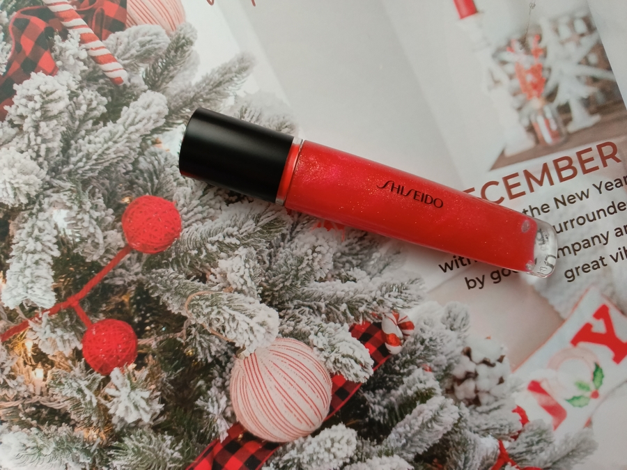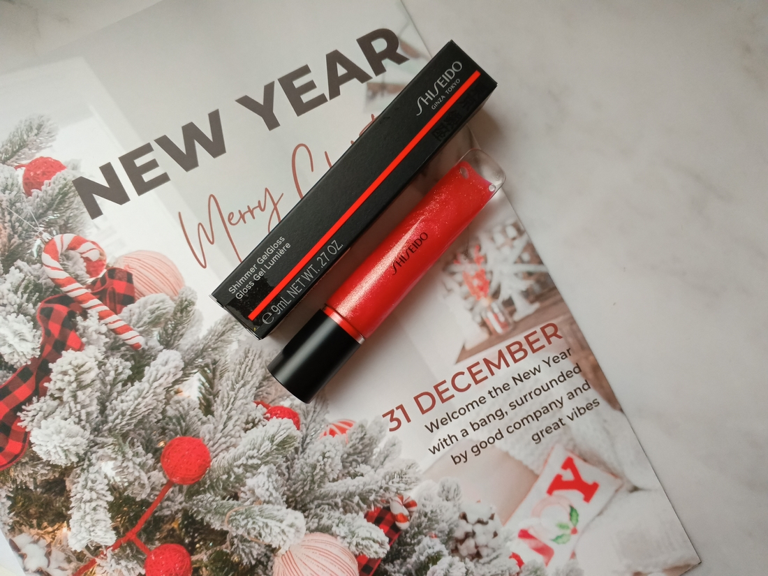 Мне нравится, как блеск выглядит на губах. Он дает еле заметный оттенок, который впрочем не становится розовым, он именно красный. И в этом оттенке мне очень нравится, что виден золотистый шиимер. Получается очень прездничный эффект.