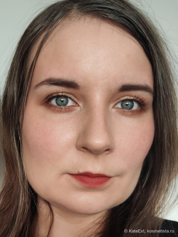 Здесь на мне только тональный крем и консилер. Наносим румяна и… И обнаруживаем, что по какой-то причине, моя камера отказывается видеть их с адекватным балансом белого. Пришлось чуть подкрутить его, так что прошу прощения за тепловатый снимок.