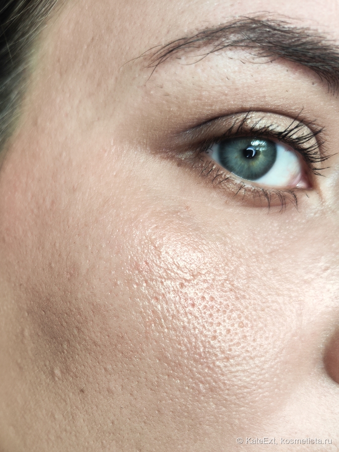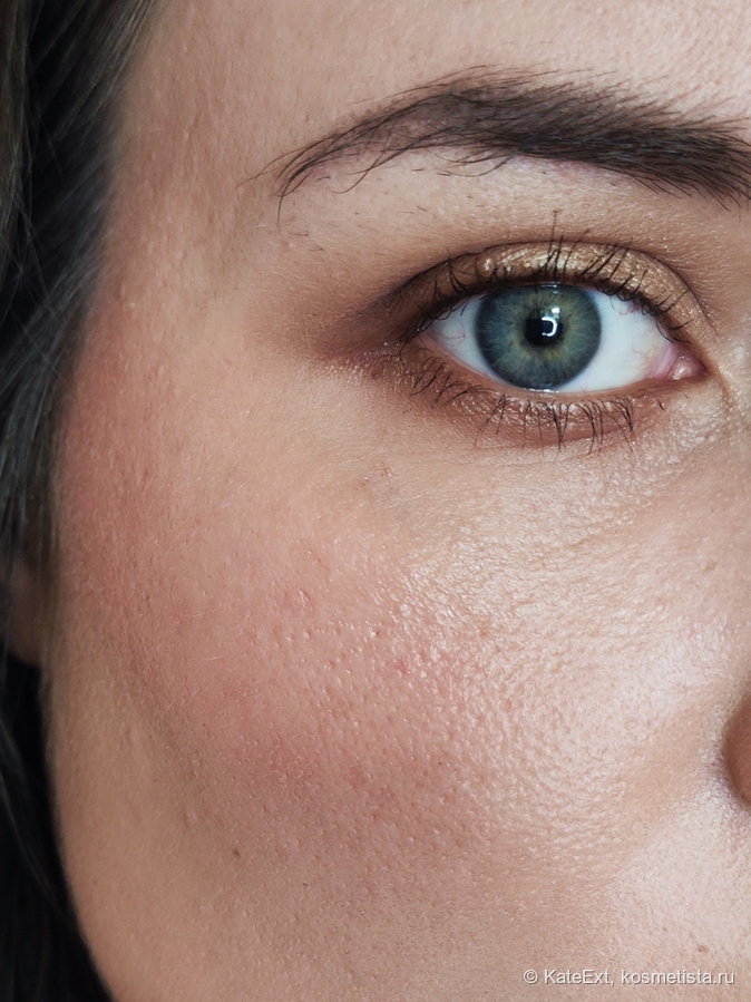 Здесь один тоненький слой румян, но даже тонкого слоя хватает, чтобы они закатились в каждую мою пору. На фото это не так заметно, но в реальности получается эффект ветрянки. Приходится знатно так притаптывать румяна пудрой, а мне не нравится толстый слой пудры на лице, так что, как вы понимаете, для меня это прям огромный минус.