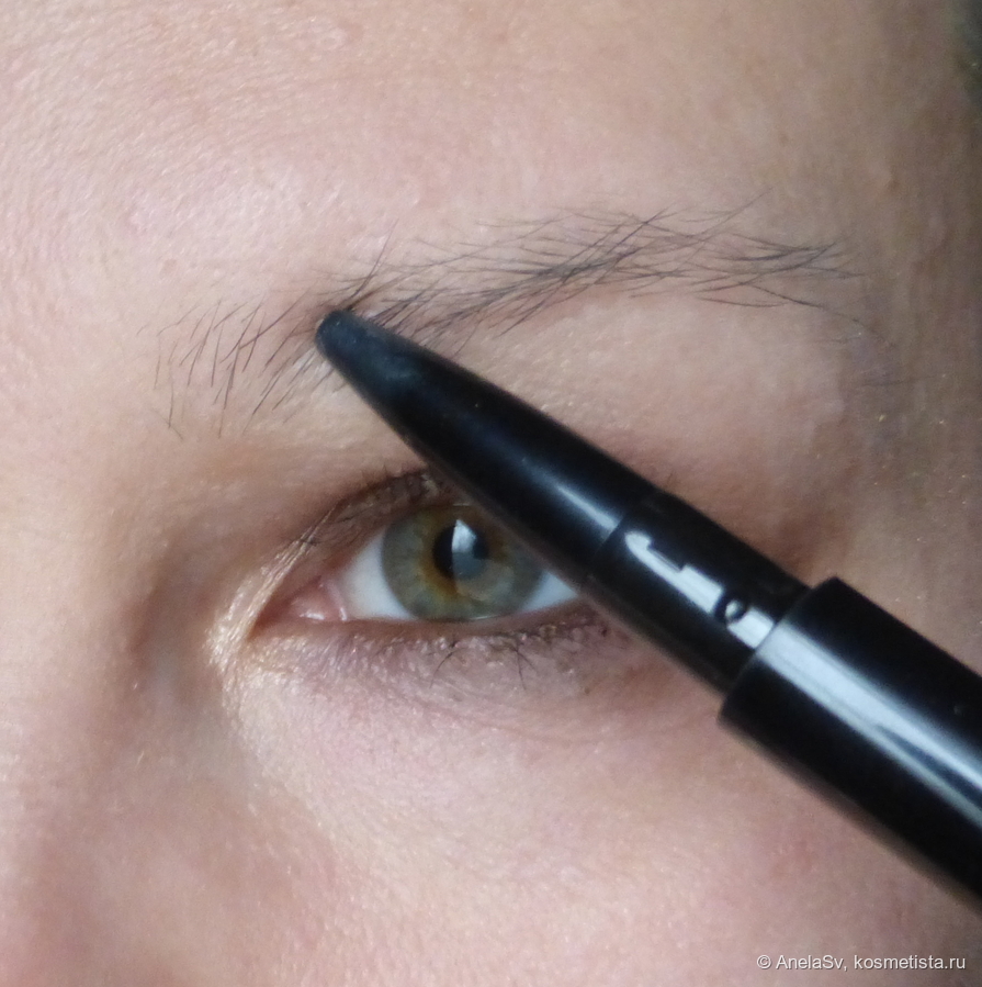 2.Нанесла кайал Pupa на водные линии, растушевала и сразу закрепила матовым коричневым из палетки Sephora.