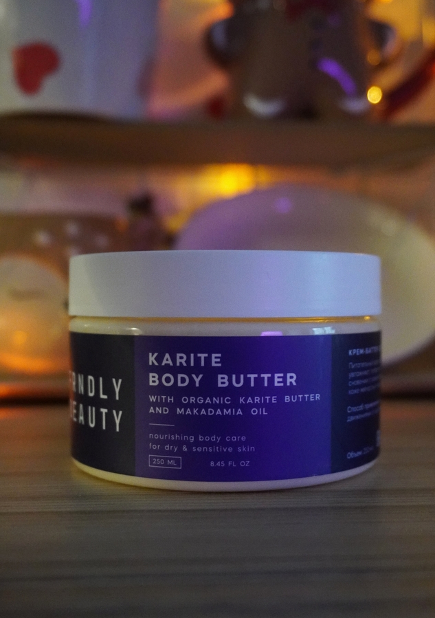 Сегодня рассмотрим крем-баттер, но уже для тела с маслом каритe и макадамии бренда FRNDLY beauty.