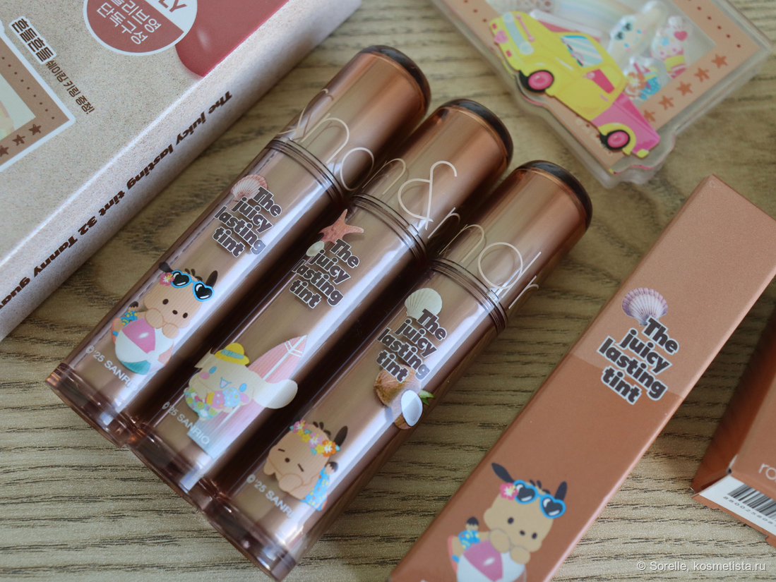 Эта линейка вышла в рамках коллаборации с Sanrio, с которым этим летом коллабились все, кому не лень. По итогам этих коллабораций я мажусь тинтами с Синамонроллом и Покаччо, а в магазин хожу с шопером с Куроми 😂