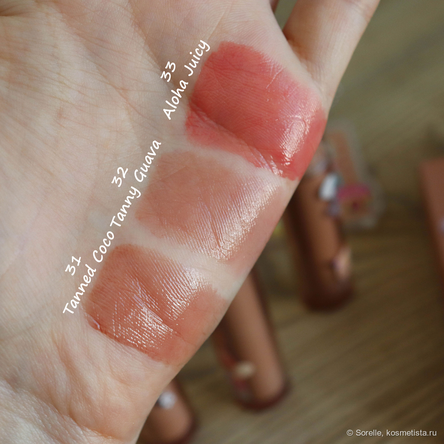 Вообще этот оттенок показался мне скучноватым, поэтому я думала заказать только 31 и 33, но в итоге именно Tanny Guava стал моим любимчиком, хотя остальные 2 тинта тоже люблю. Но нюд занимает в моем сердце отдельное место)