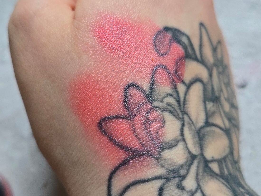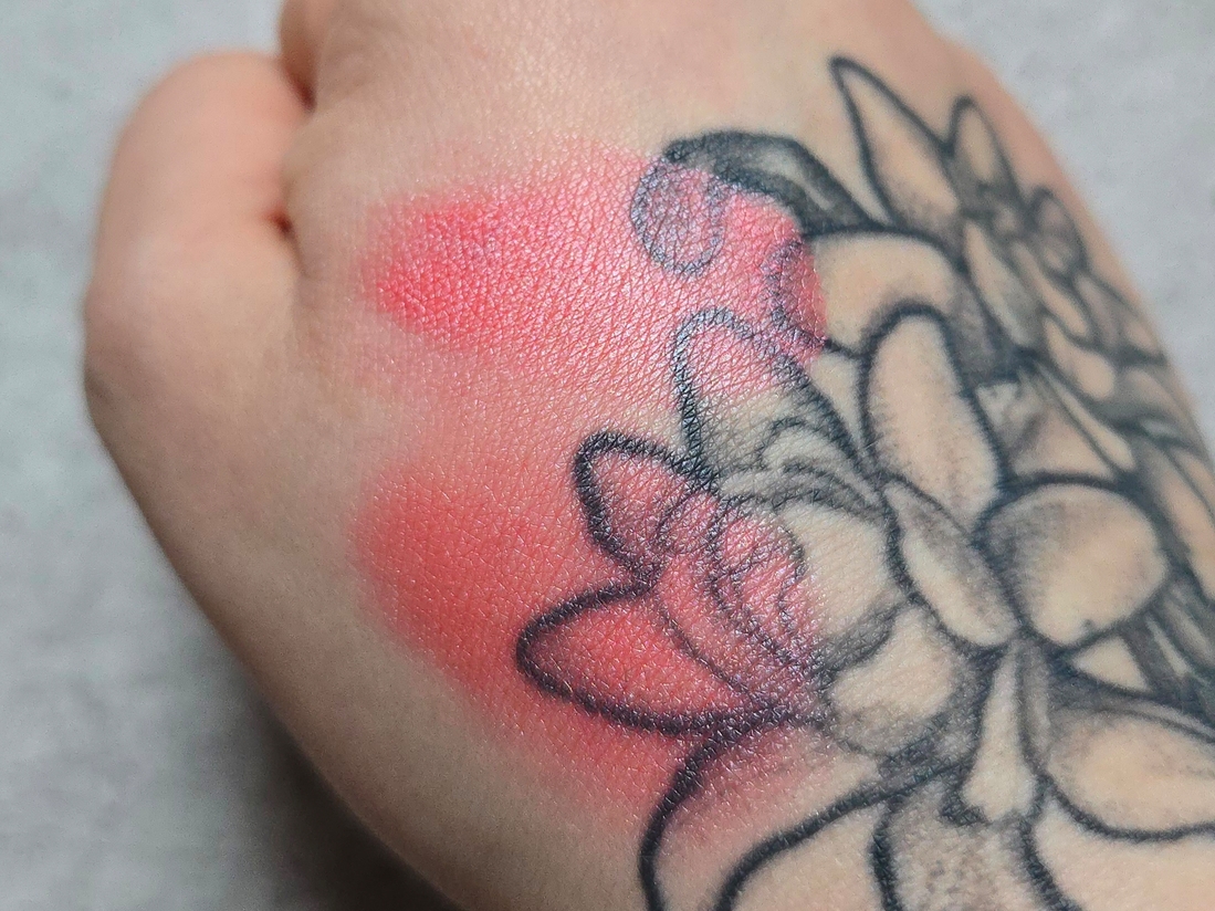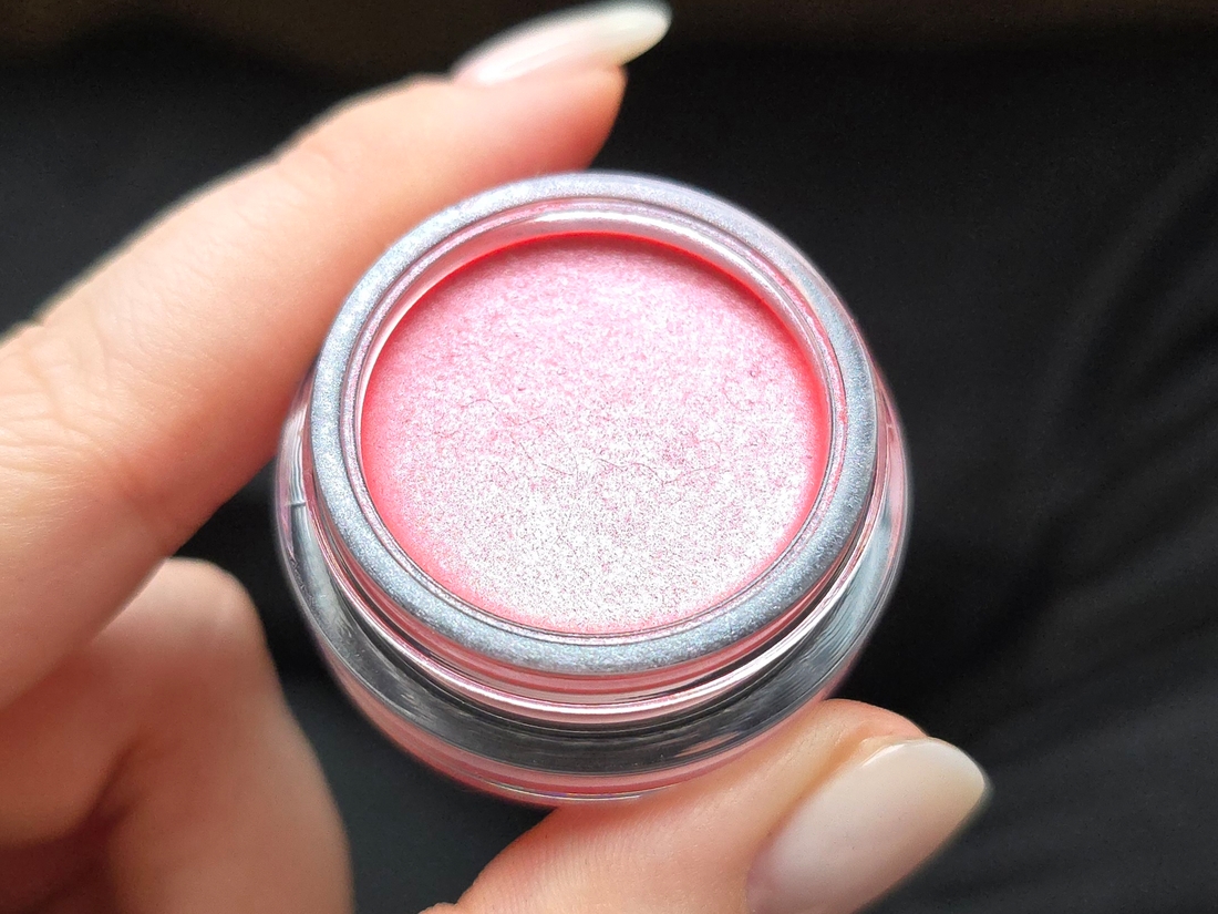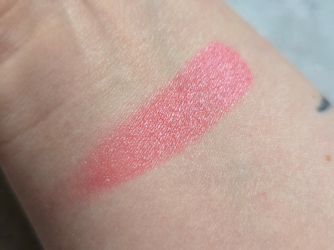 В румянах очень, очень много серебристого прозрачного шиммера. Из-за этого они меняют оттенок в месте, где их касаешься пальцем. Отдушка — субтильная роза, такая же, как у их помад.