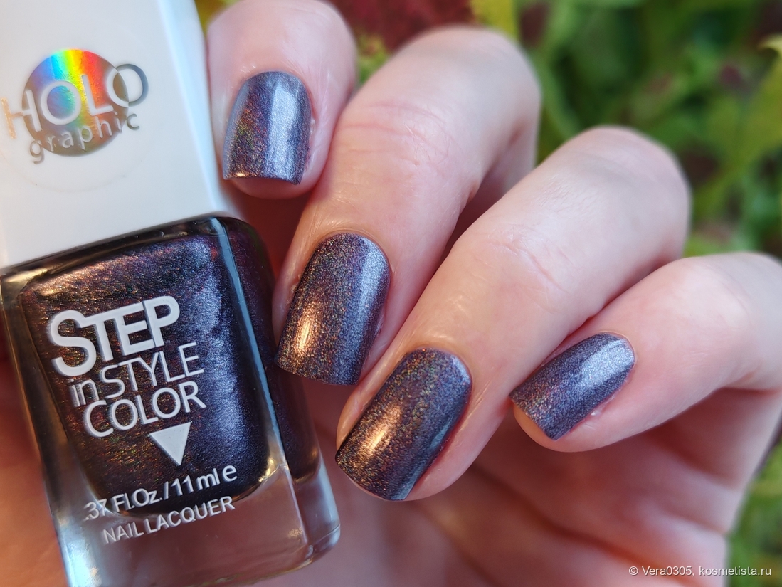 Наконец-то дошли руки до этого голографика. Из всей коллекции понравились два сложных и глубоких оттенка — терракоторый и вот этот сложно описываемый красавчик.