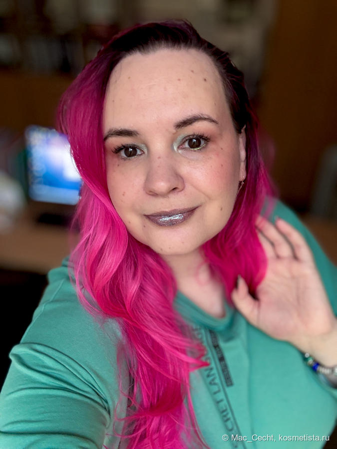 А блеск цвета елочки при дневном свете на мне смотрится вот так и очень гармонирует с холодными зелеными: