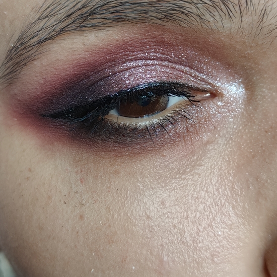 Цвет ложится плотно, отлично наслаивается. Я думаю, если использовать базу или подложку, тени будут выглядеть еще лучше.