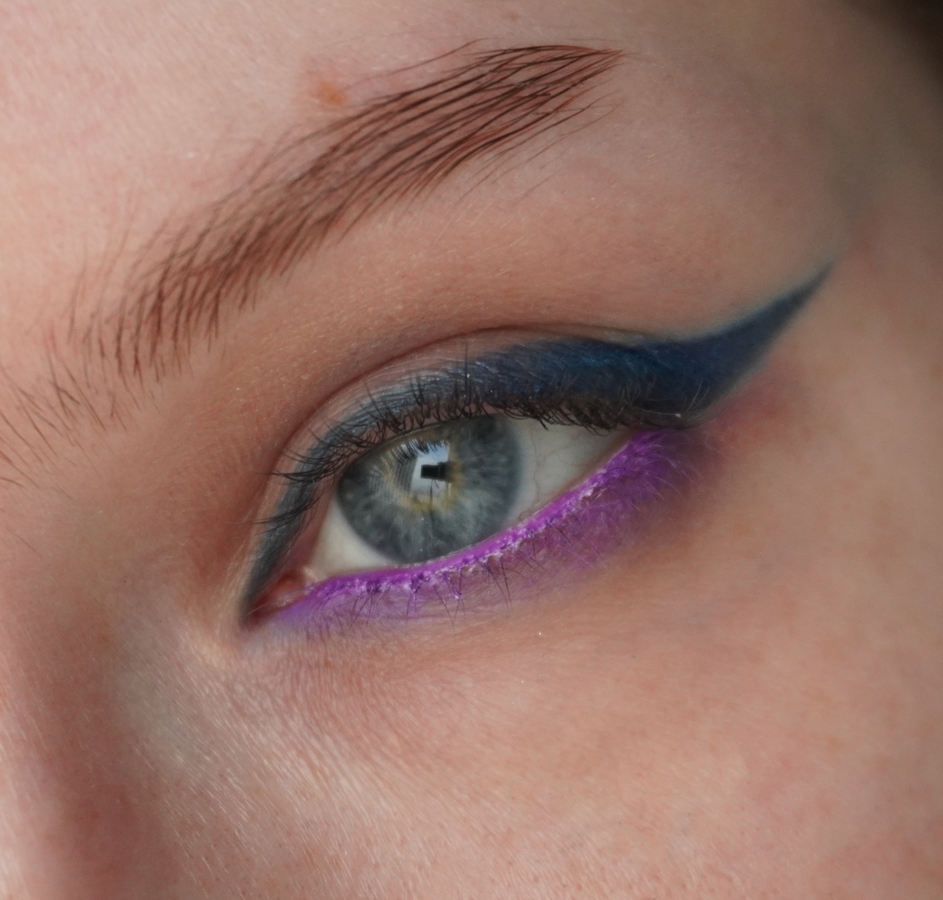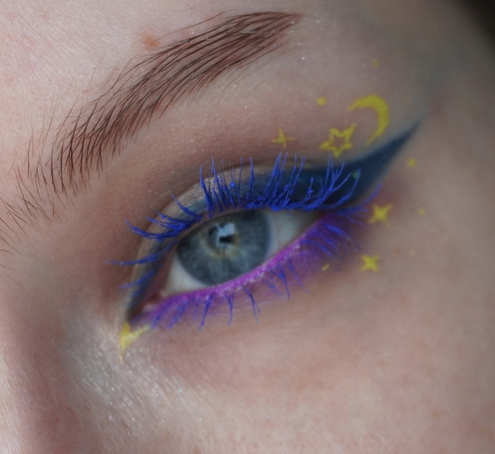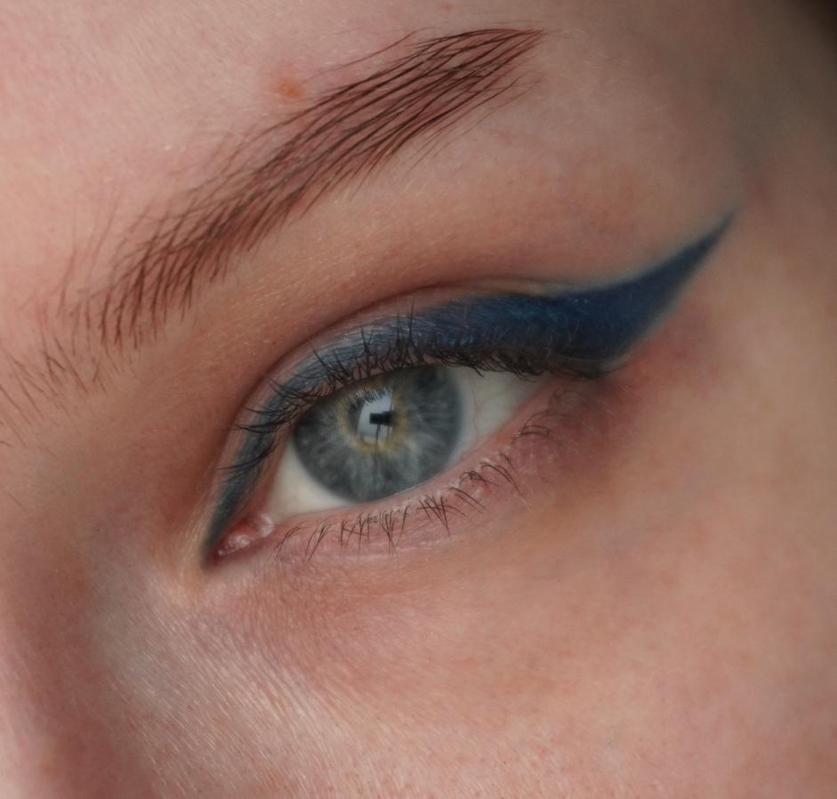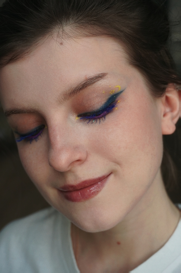 - Черные ресницы, конечно, хорошо бы вписали сюда, но синии смотрятся еще лучше.