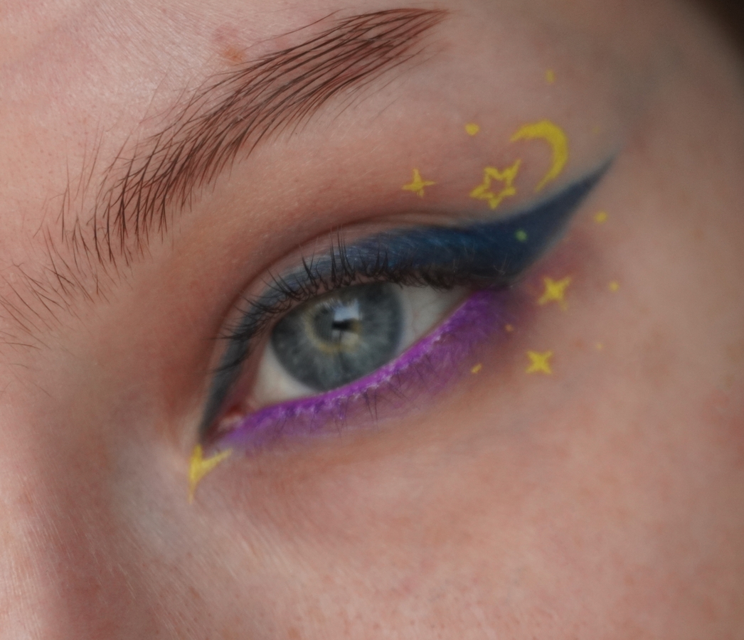 Сегодня мы с вами продолжаем творить в рамках флешмоба «Палитра месяца» и создаём вот такой вот космический макияж: