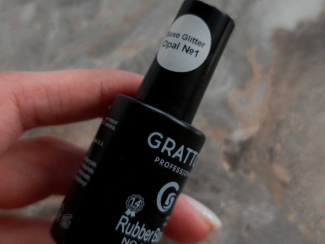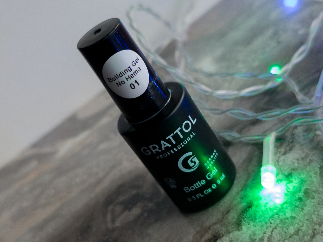 Самый беспроигрышный фон под слайдеры — это молочный камуфляж. Я выберу гель во флаконе с кистью, чтобы дополнительно укрепить натуральные ногти. У меня это Grattol Bottle gel в оттенке 01.