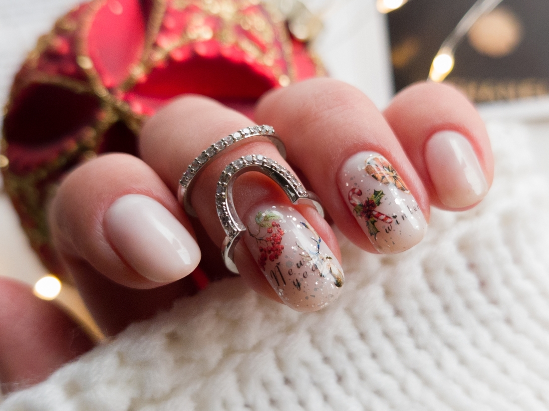 Для меня в году есть два значимых и особенно любимых маникюра — это отпускной и новогодний. В этом посте я хочу показать очень простой, но атмосферный дизайн с помощью слайдеров (тонких прозрачных пленок-наклеек). Просто блесточки мне как-то надоели, я долго носила их просто так в течении года, хочется смотреть на ногти и лицезреть новогодние картинки).