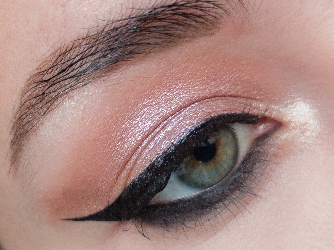 Формула мне понравилась, она не сухая, очень гладко идет по веку, не спотыкается об складочки, но и не затекает в глаз.