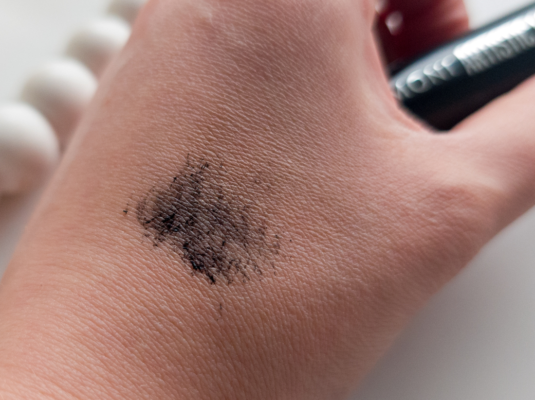 У меня тушь в черном оттенке, также к продаже доступен коричневый. На свотче он не выглядит прям угольным и уходит в серый, но на ресницах этого не видно.