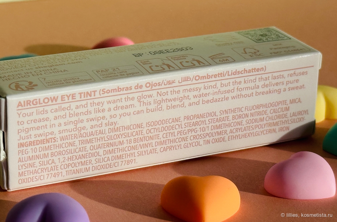 Тени одинаково смотрятся на веках что с базой, что без базы. Отлично наносятся, распределяются, не плешивят. Пигментация насыщенная, мне достаточно пары точек для полупрозрачного слоя. Текстура теней Sheglam мне очень напоминает тени Eye Tint от Essence (хотя продукты изготовлены в разных странах) — такая же легкая, чуть гелевая и со слегка холодящим эффектом после нанесения.