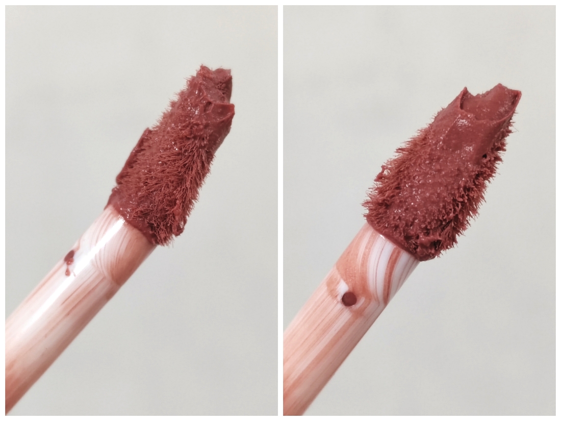 Дозатор широкий, может выдавать излишки помады, но того количества, что попадает на аппликатор, вполне хватает, чтобы сразу полноценно прокрасить губы полностью.