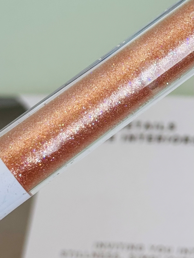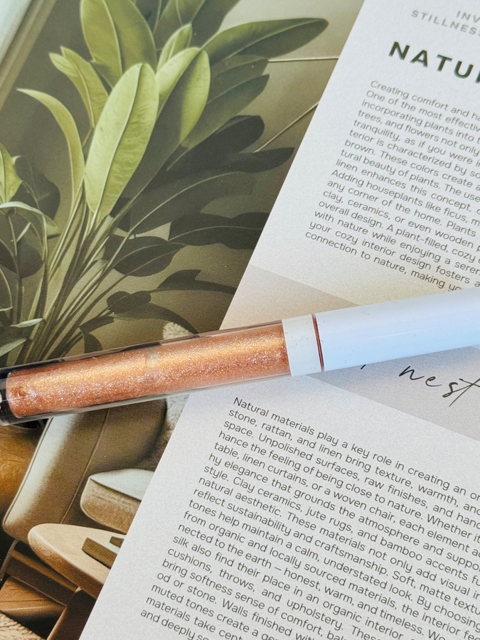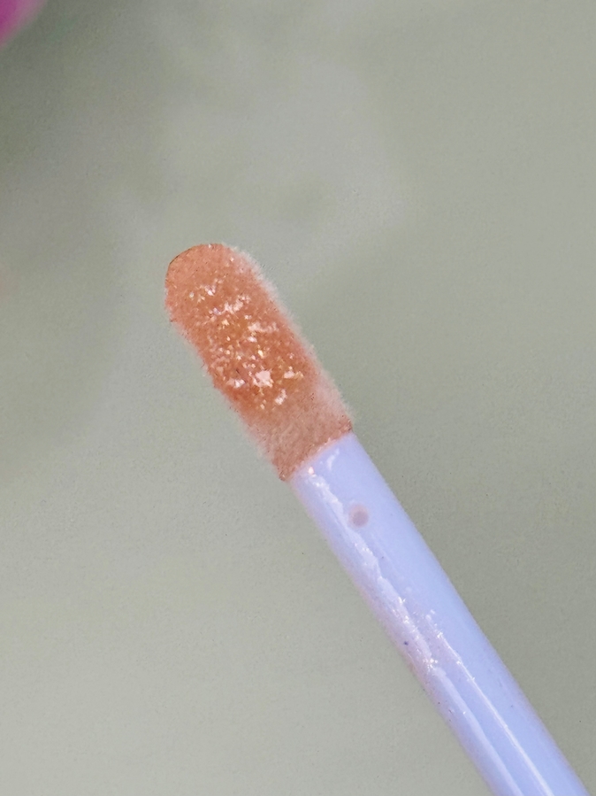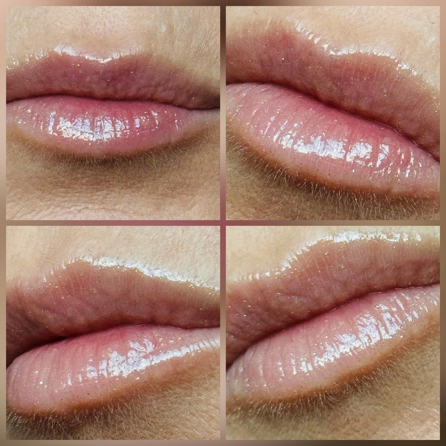 Так как именно в этом блеске мне нравится то, что он имеет не плотную текстуру, а скорее он полупрозрачный, то и наношу я его обычно в один слой. Тогда он придает губам легкий золотистый оттенок