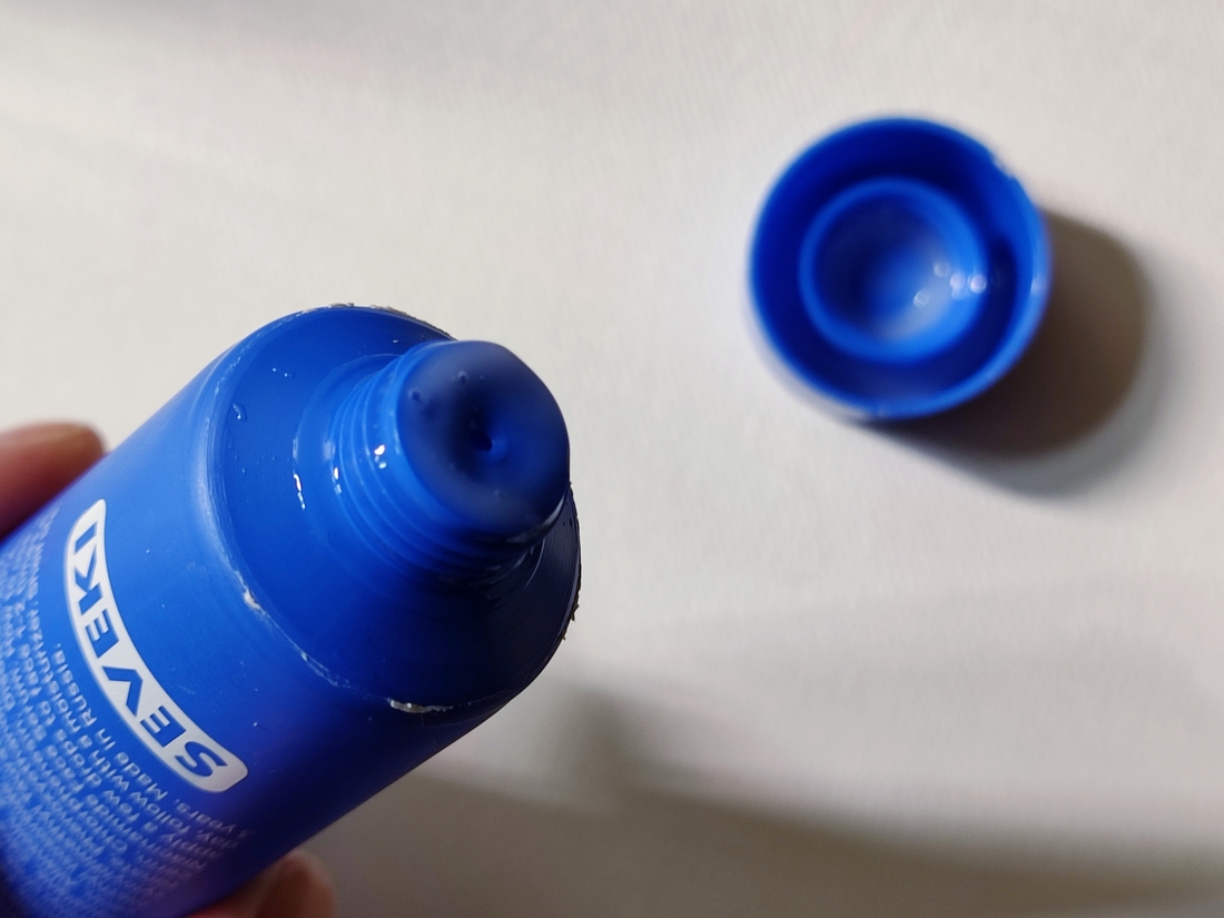 А из-за того, что текстура сыворотки жидковата — она протекает. И вот так выглядит тюбик приблизительно всегда.