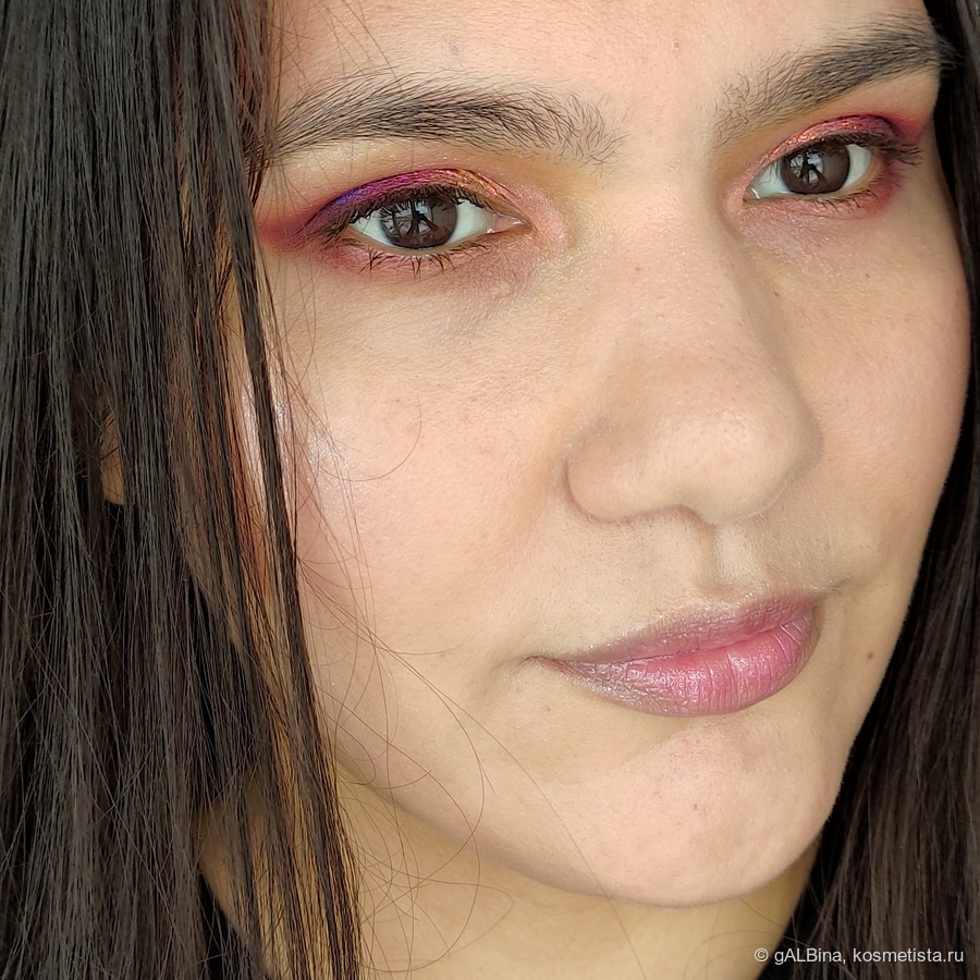 Во внутреннем уголке глаза использовала самопресс «Вызывающая засуху». Как можно заметить перелив минимальный.