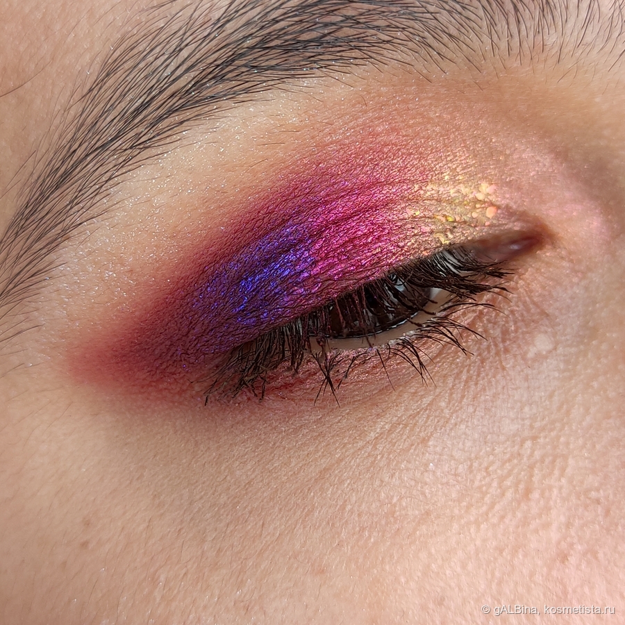 На мой взгляд довольно простой по переливам хроматик. По описанию бренда это фиолетовый с переходом в розовый. Я же вижу его сине-фиолетовым.