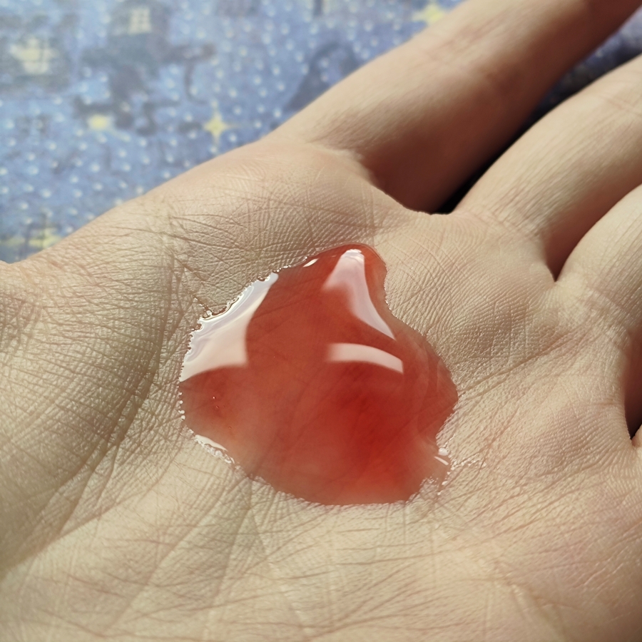 Цвет прозрачно-красноватый. Консистенция в меру «гелеобразная».