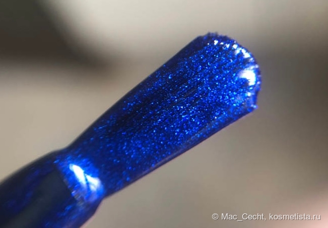 Особенно удобно, что ей можно набрать много лака и протянуть сразу на весь ноготь. С моей длиной мне не всегда этого хватает с более мелкими кистями.
