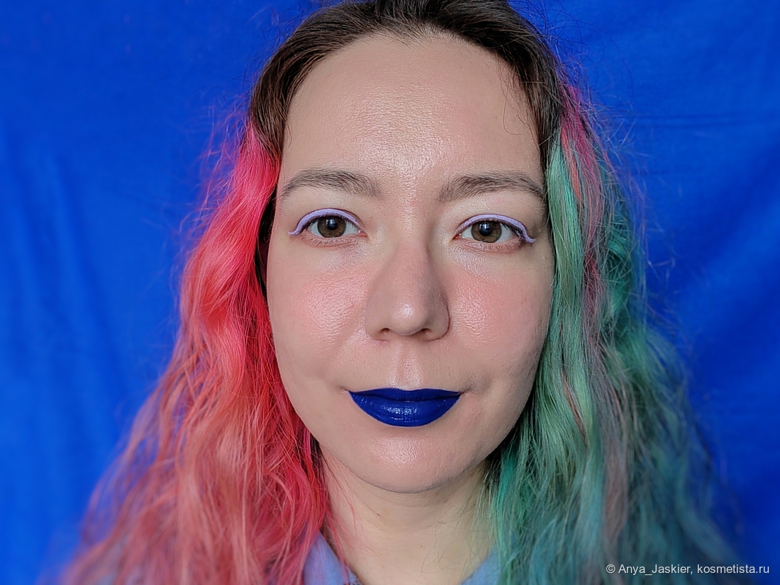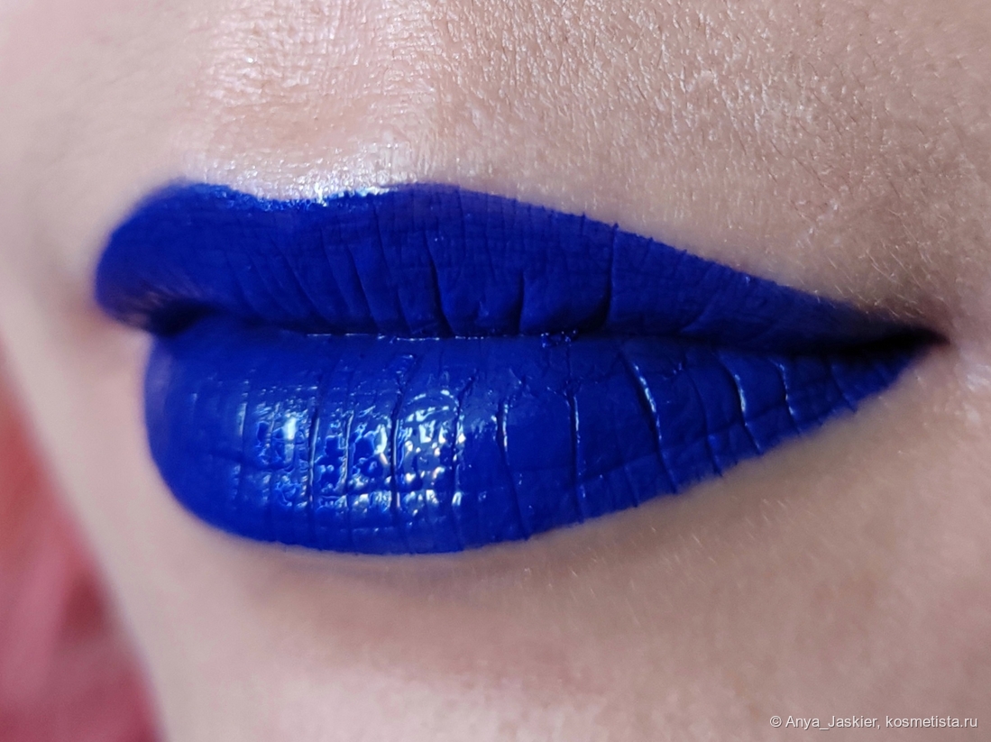 Такой вот интересный продукт появился больше года назад в моей косметичке. Для меня его плюсы перевешивают минусы — платить за ультрастойкость и отсутствие отпечатывания танцами с бубном при нанесении я готова. Больше всего смущают катышки пигмента на слизистой — за это минус балл. По комфортности ношения помада меня устраивает — никакого увлажнения я не чувствую, но и сухости нет тоже. Более того, я обзавелась подобной зелёной, и тремя более эээ «классическими» оттенками. Всё же за фулпрайс рекомендовать ее не могу — 13 долларов, на мой взгляд, это чересчур, а вот на скидках на маркетплейсах эту линейку можно поймать за 300-600 рублей, а это уже другой разговор! И стопроцентно это лучшая синяя помада из всех, что я когда-либо пробовала.
