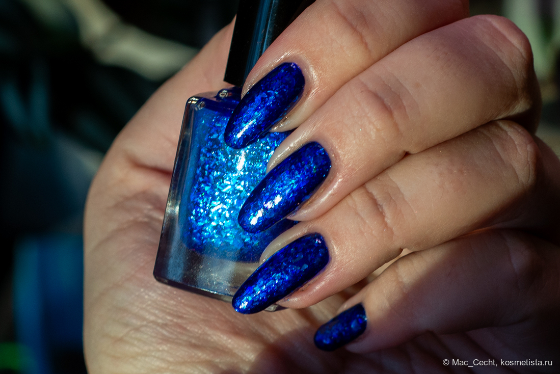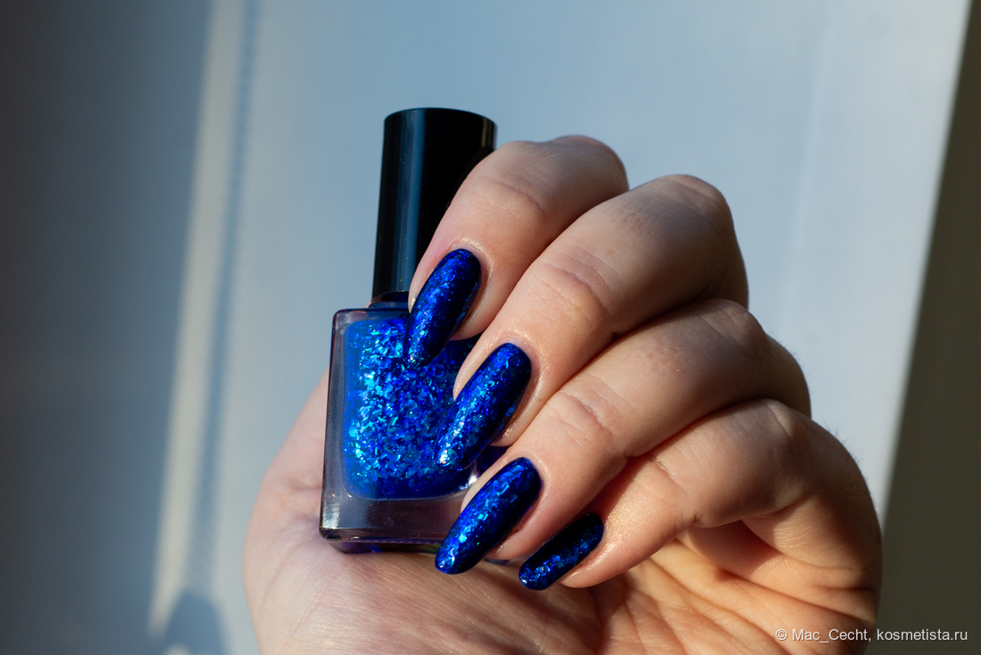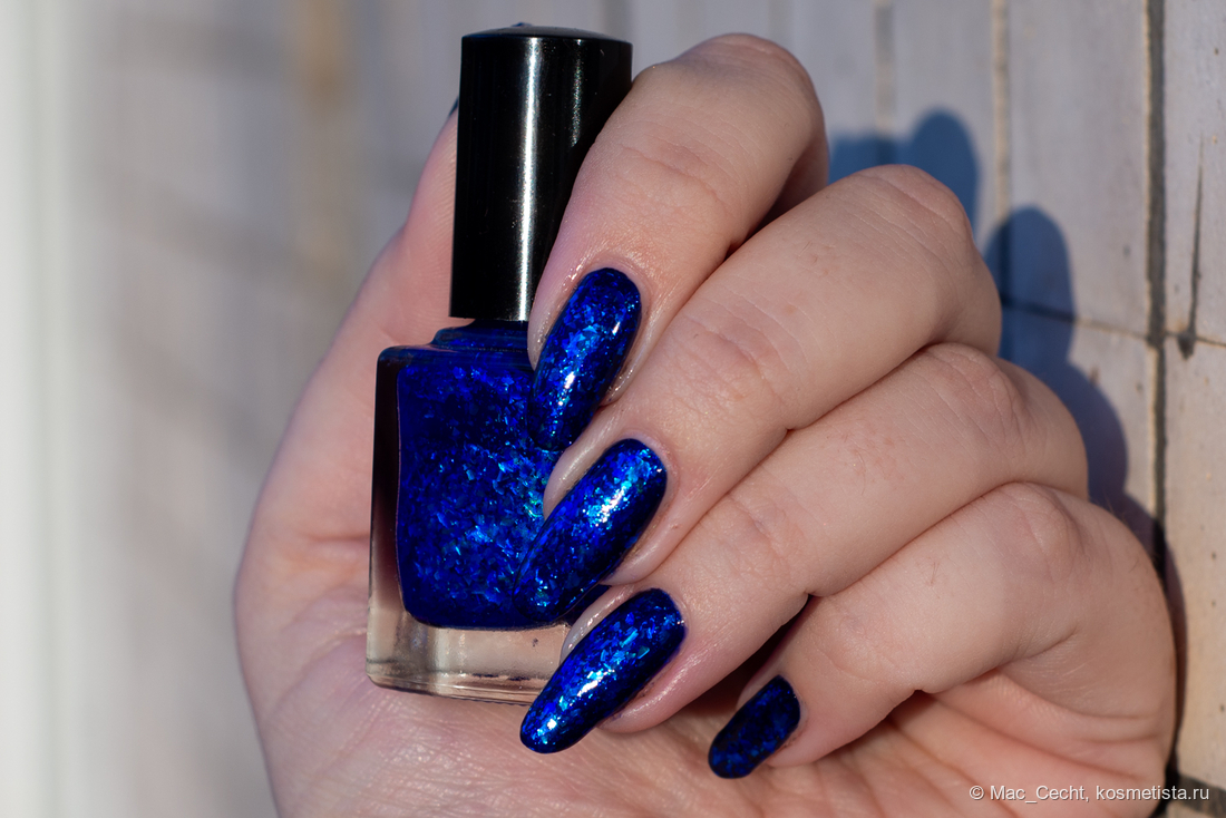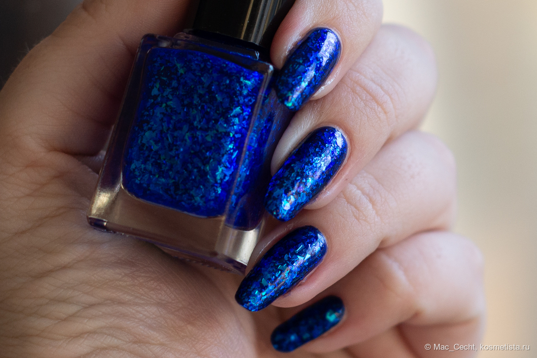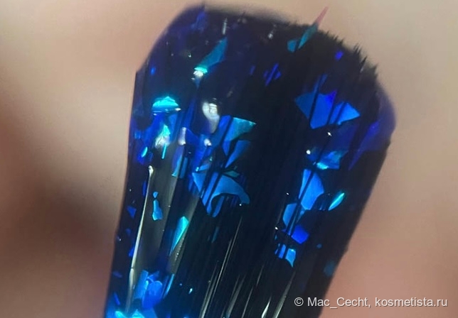 Слюды много, она подвижная, перед сушкой/топом лучше подсушить немного или наносить параллельно ногтю, иначе можно немного сдвинуть ее с края. Впрочем, пальцем тут же можно поправить обратно.
