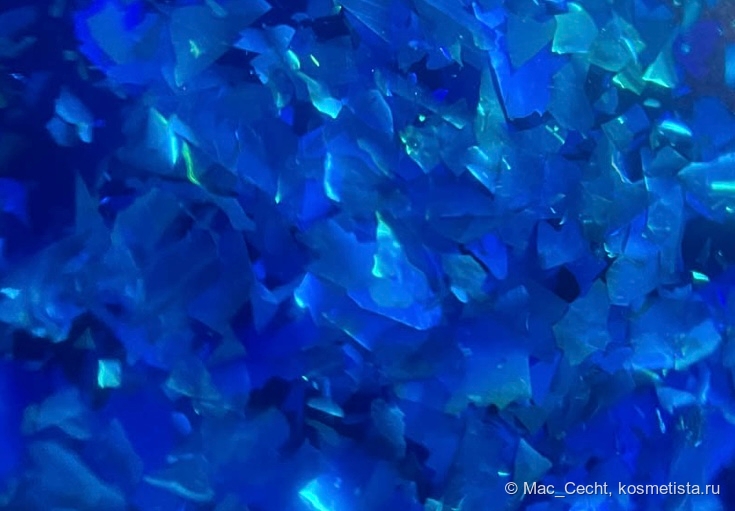 Вообще-то, я не знаю, сама слюда синяя или становится синей от погружение в синее желе, но мне кажется, что она не серебряная. Однако фольгированная и на некоторых фото отражает свет сильнее, чем я вижу это в реальности.