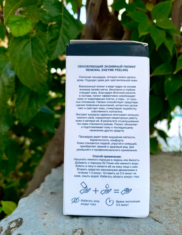 После долгого перерыва, когда я не использовала энзимный пилинги, я увидела результат сразу. Кожа задышала, стала глаже на ощупь и очень хорошо почистились чёрные точки на носу, которые у меня возникают, если не пользоваться кислотами и подобными пилингами. На следующее утро при умывании я тоже отметила особую мягкость кожи лица.