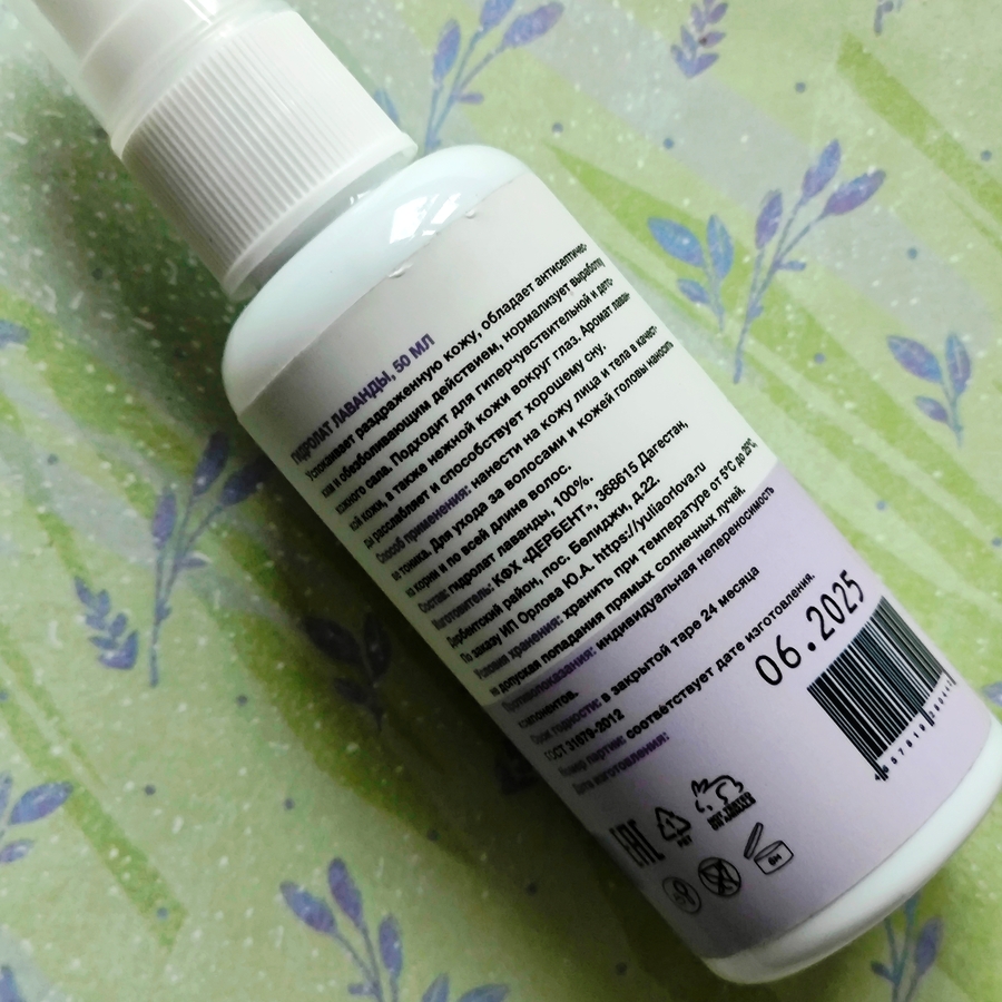 Состав здесь на полностью натуральный: гидролат лаванды 100%