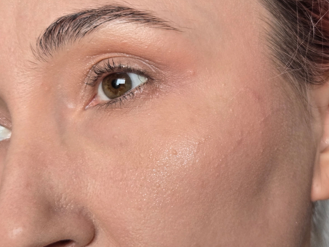 На кожу никак продукт не влияет: не вызывает прыщики. Более того, не подчеркивает текстуру, не делает серую полосу.