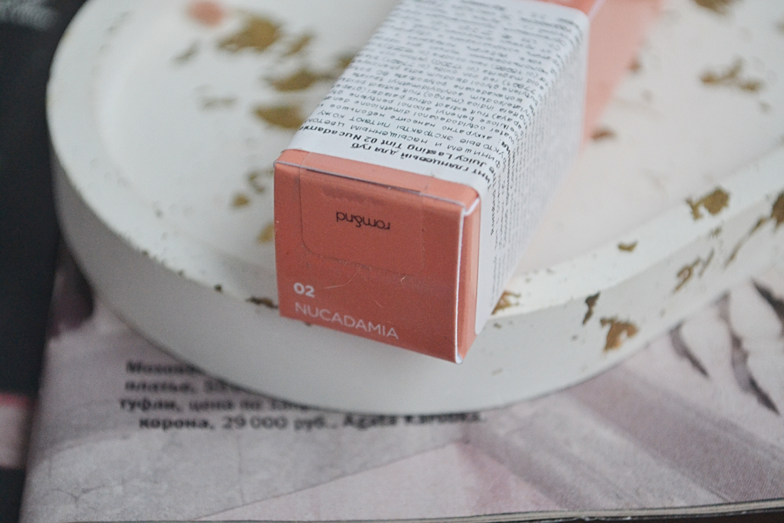 Я не люблю на себе теплые оттенки, обычно они очень простят меня, но Rom&nd сделали действительно красивый теплый персик. Иногда кажется, что и какая-то краснота проглядывает.