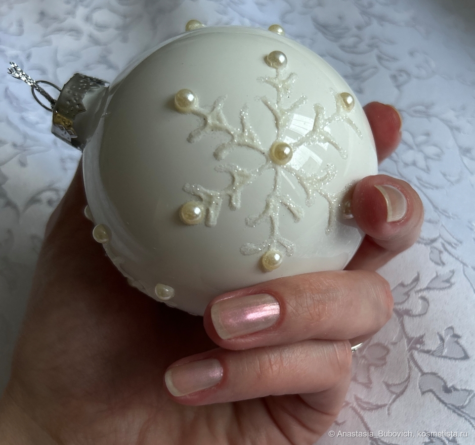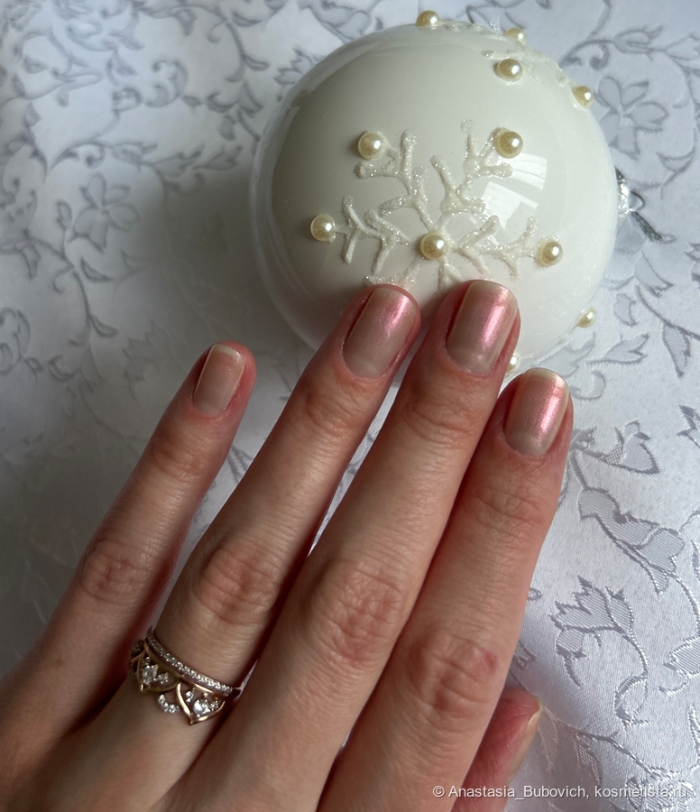 Я не люблю яркие, цветные или темные лаки. Предпочетаю нюдовые спокойные оттенки. Этот лак ношу соло. Но на мой взгляд, он придаст праздничного настроения более насыщенным цветам или придаст нескучности обычному нюду.