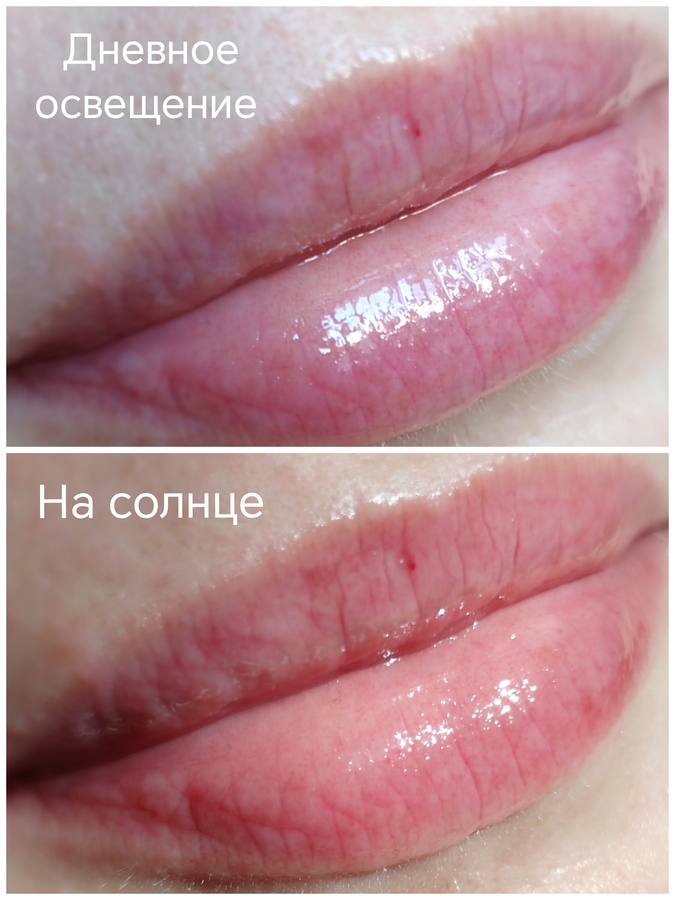 Финиш — красивый ровный глянец. Это не стекло и не водная гладь, как у блесков, нет… Визуально, больше похоже на сироп — когда тягучая консистенция обвалакивает каждую складочку на коже, но выглядит все при этом единым целым.