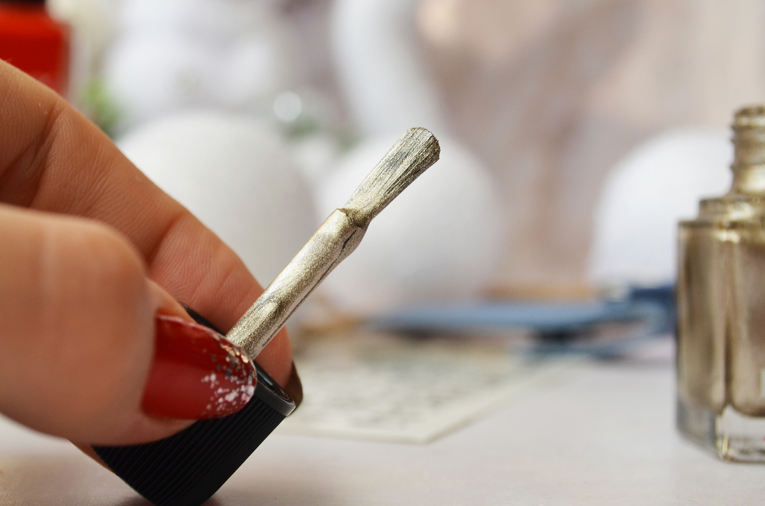 Захотелось мне тут наваять чего-то банально-новогоднего на ногтях, вооружилась я необходимым, включила сериал «Во всём виновата она» — не смотрели? Очень интересный, и приступила к делу.