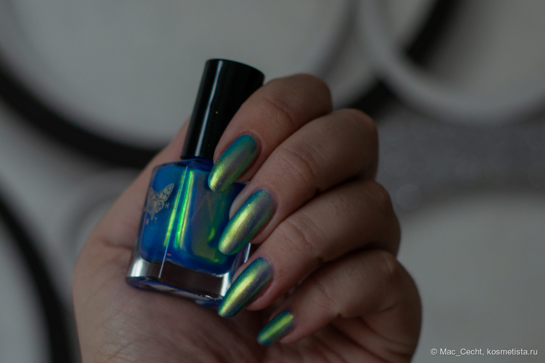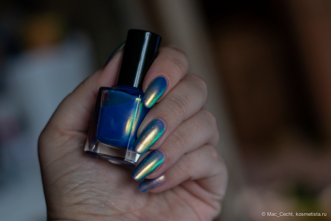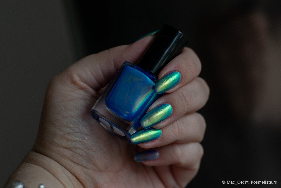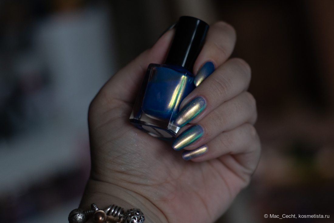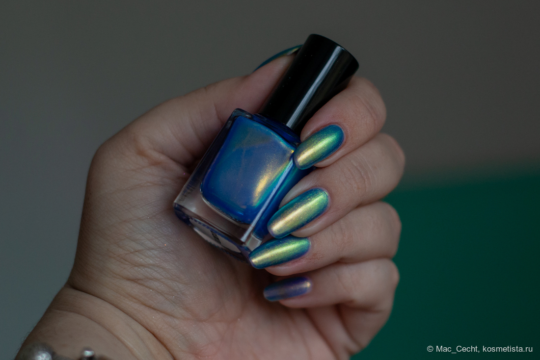 По переливчатости и изменчивости больше всего напоминает Амброзию Полиш Молиш, но в Аброзии крупнее фракция, и другой цветовой замес, хоть и на основе синего.