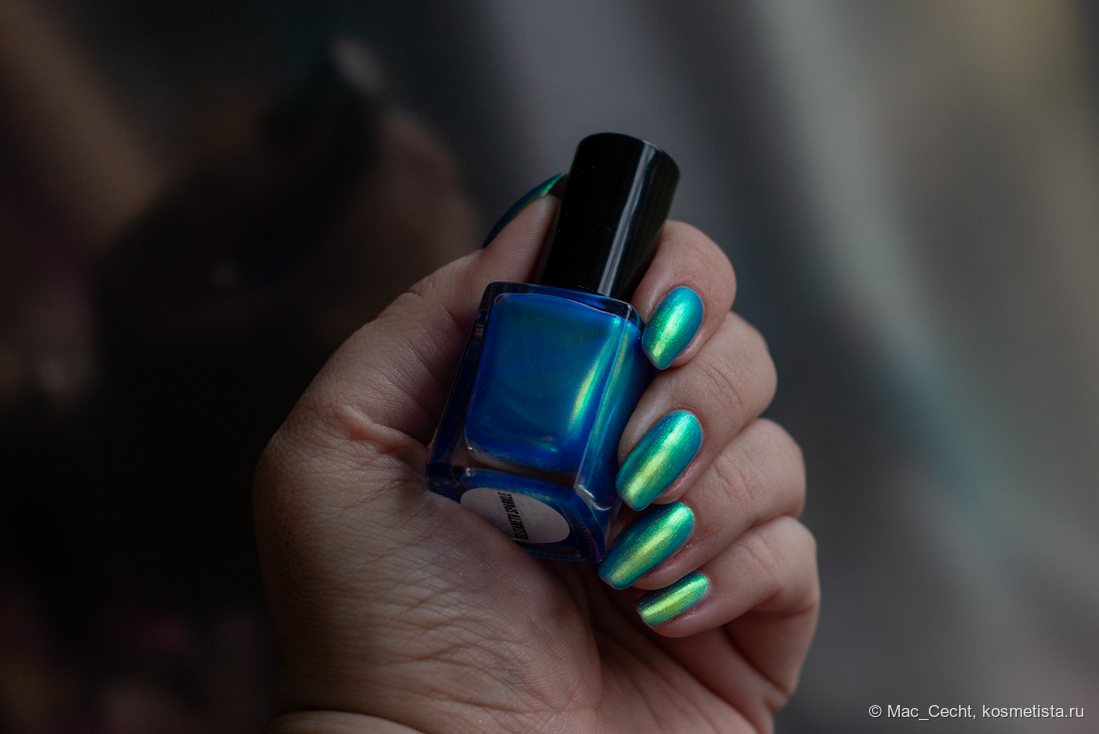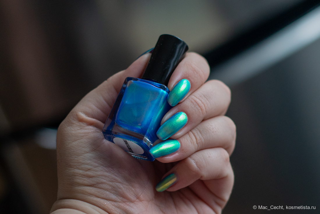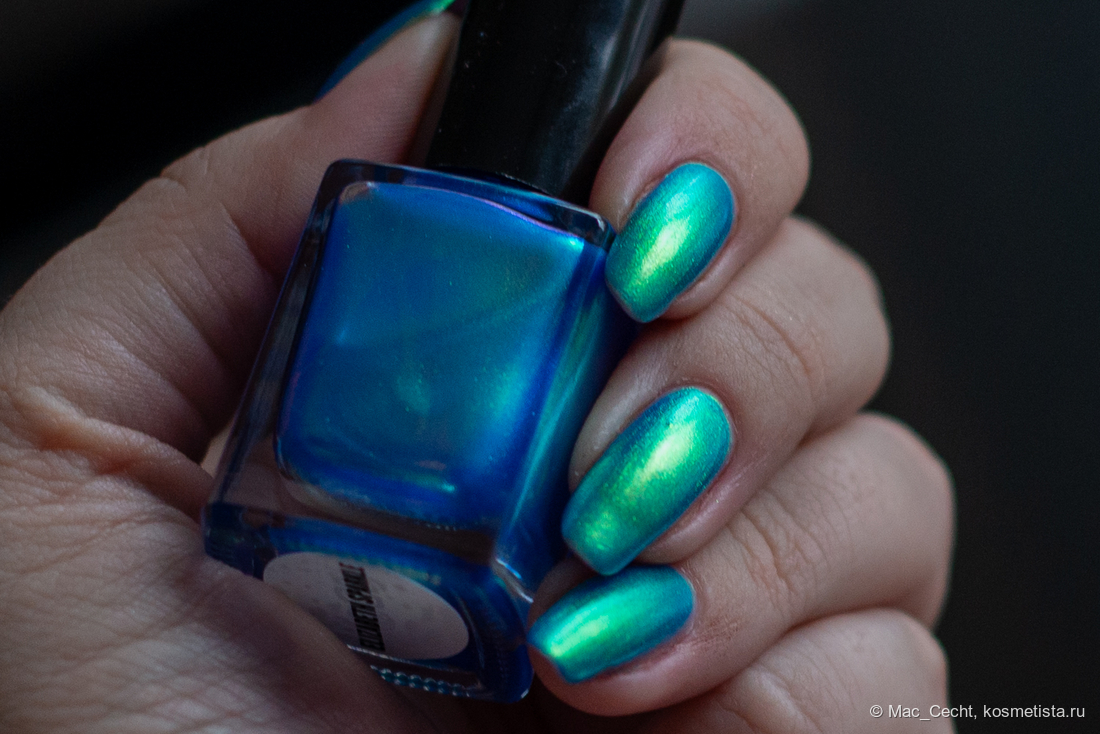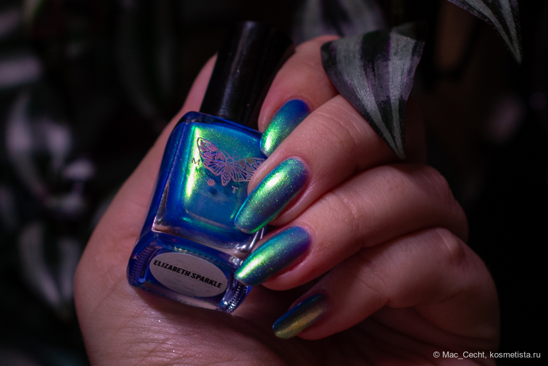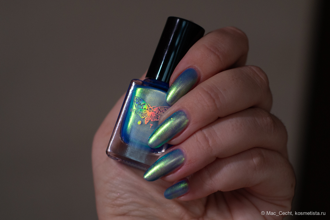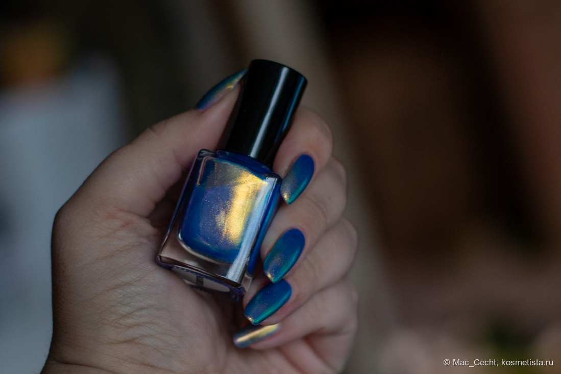 По переливчатости и изменчивости больше всего напоминает Амброзию Полиш Молиш, но в Аброзии крупнее фракция, и другой цветовой замес, хоть и на основе синего.