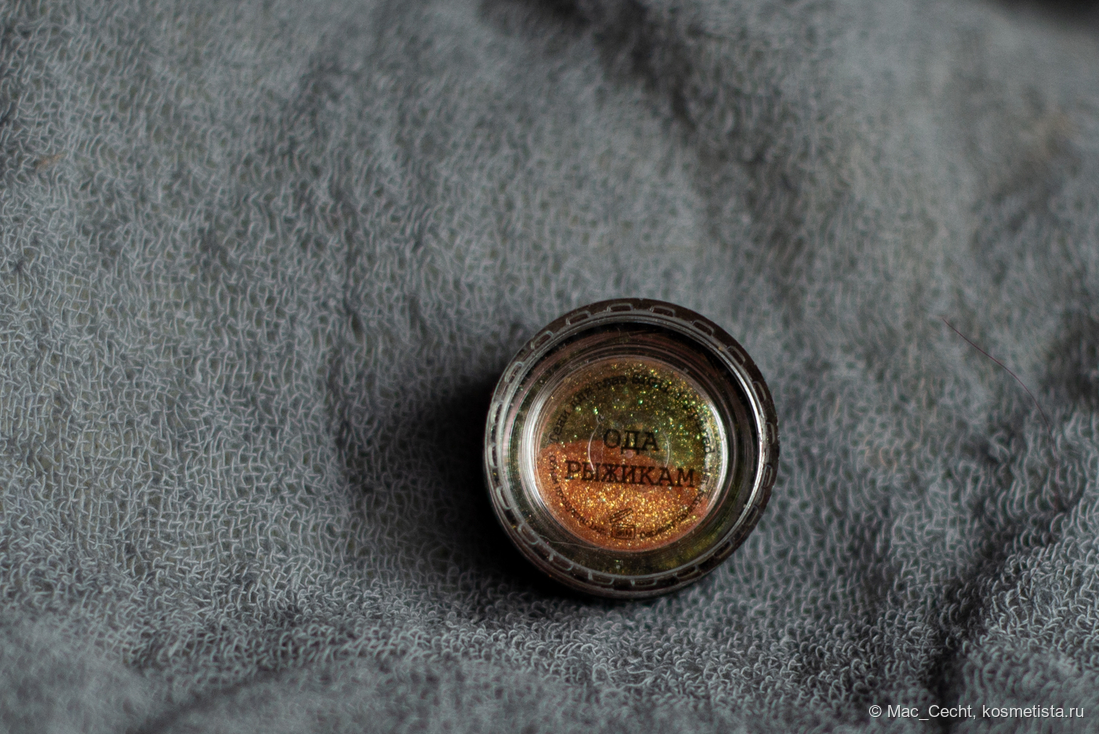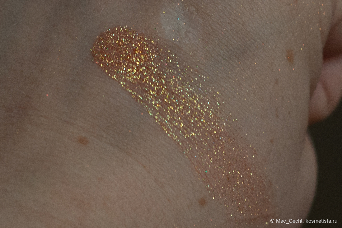 Ода рыжикам — это оранжевый с салатовым шиммером. Вот так кратко и правильно. Вообще, шиммер салатово-желтый, я бы сказала, но зелень четко читается.