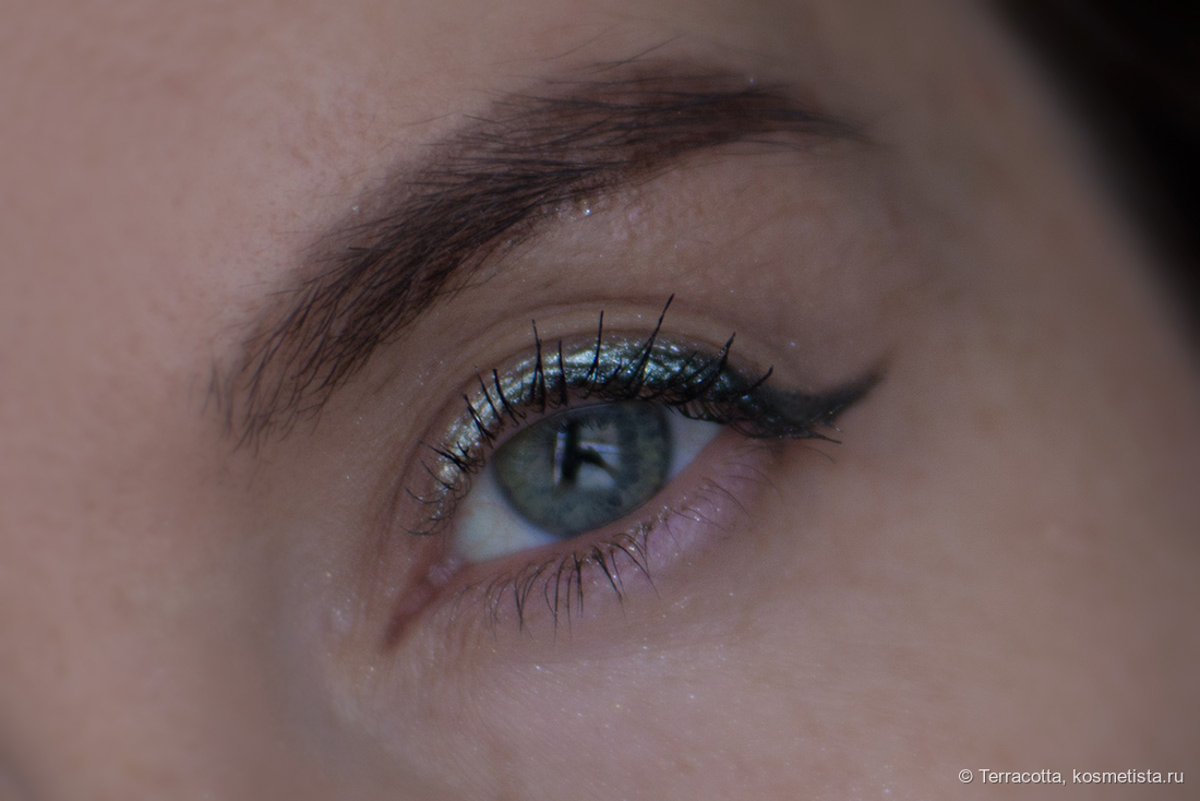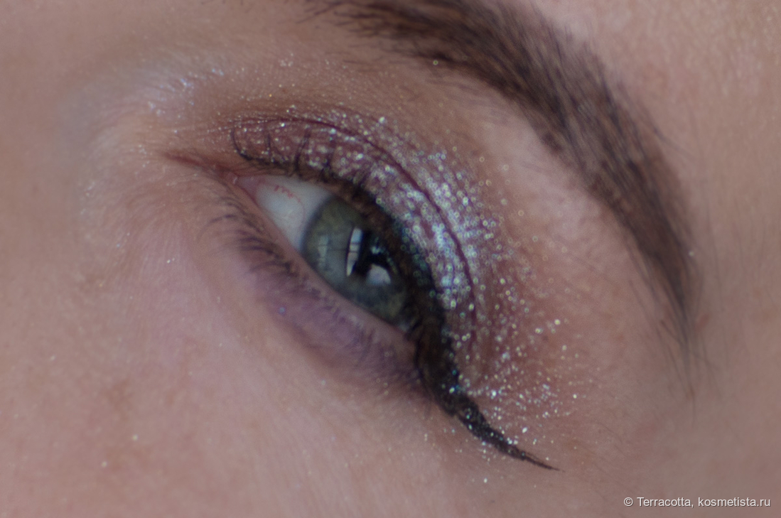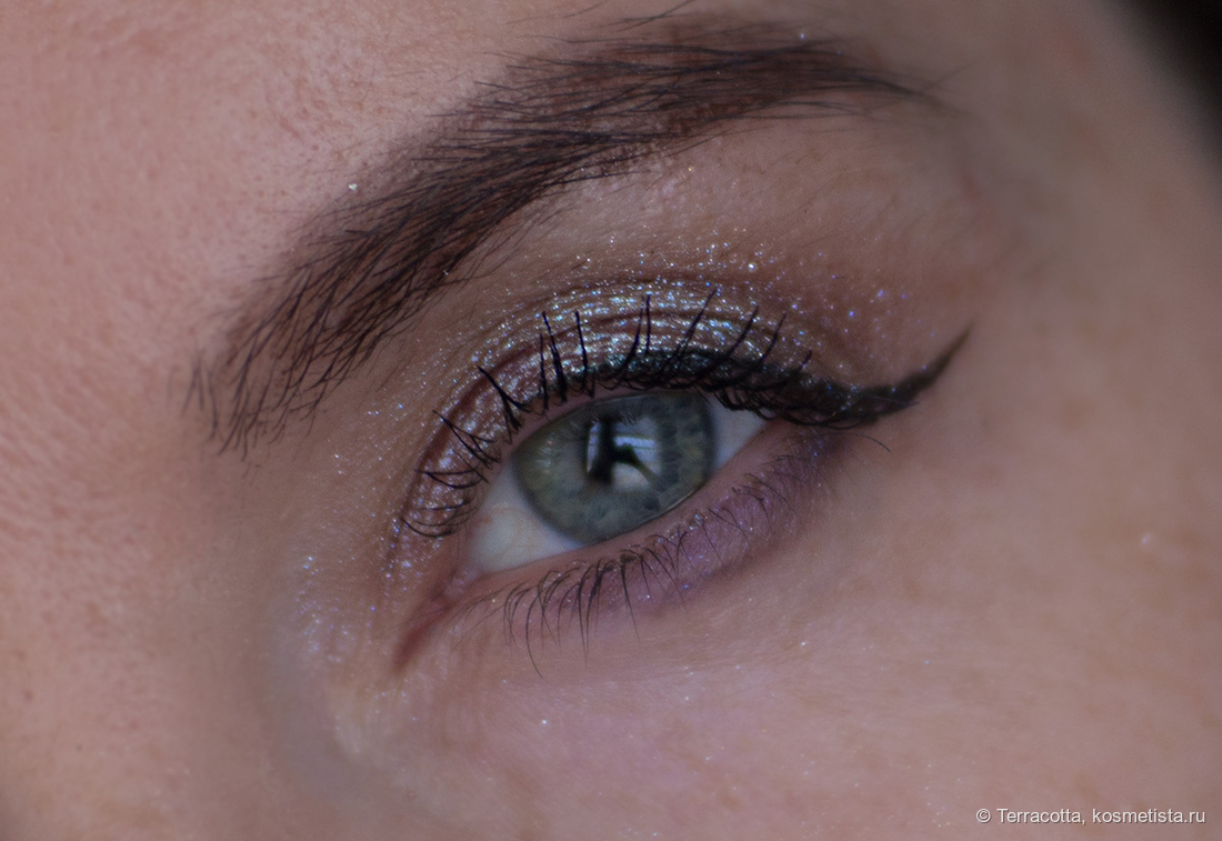Попробовала нанести в качестве подводки поверх черного лайнера. Очень красиво, но я не пробовала носить и проверять на стойкость.