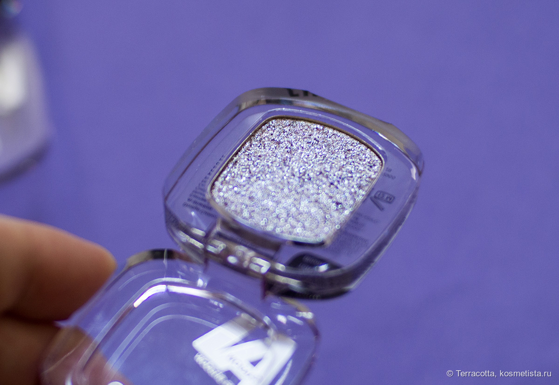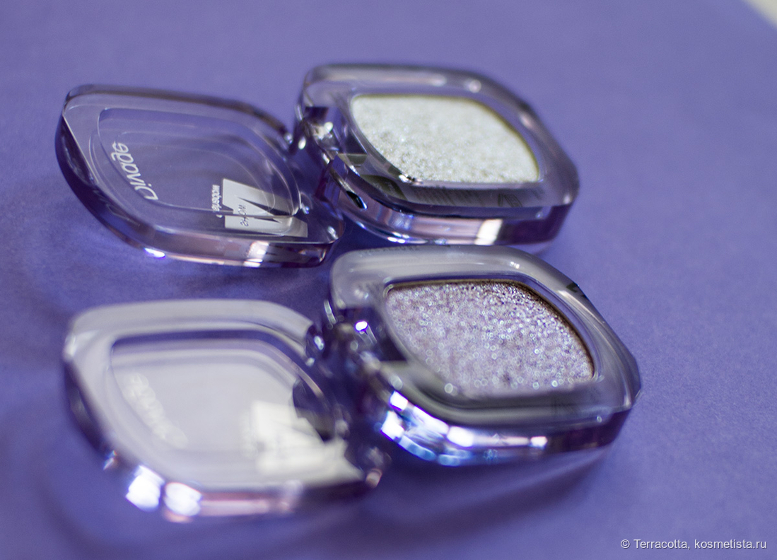 Моно-тени спарклы. Хотя упаковка простая, пластиковая, выглядят они как льдинки, а сияние в рефилле только подчеркивает это. Самые красивые тени, что я видела за последнее время.