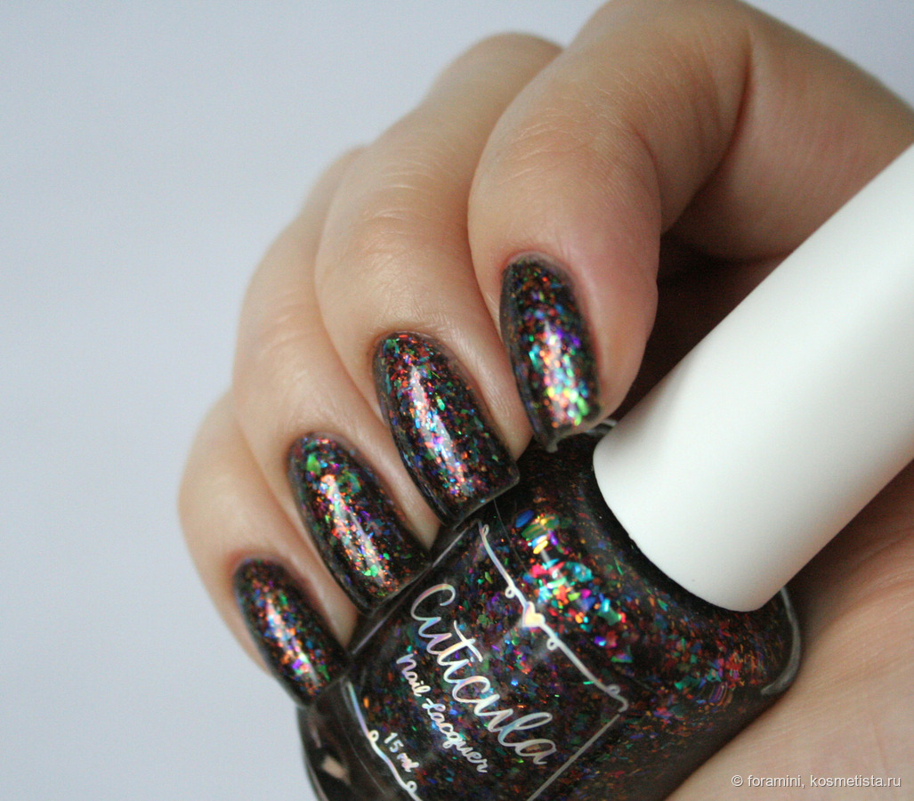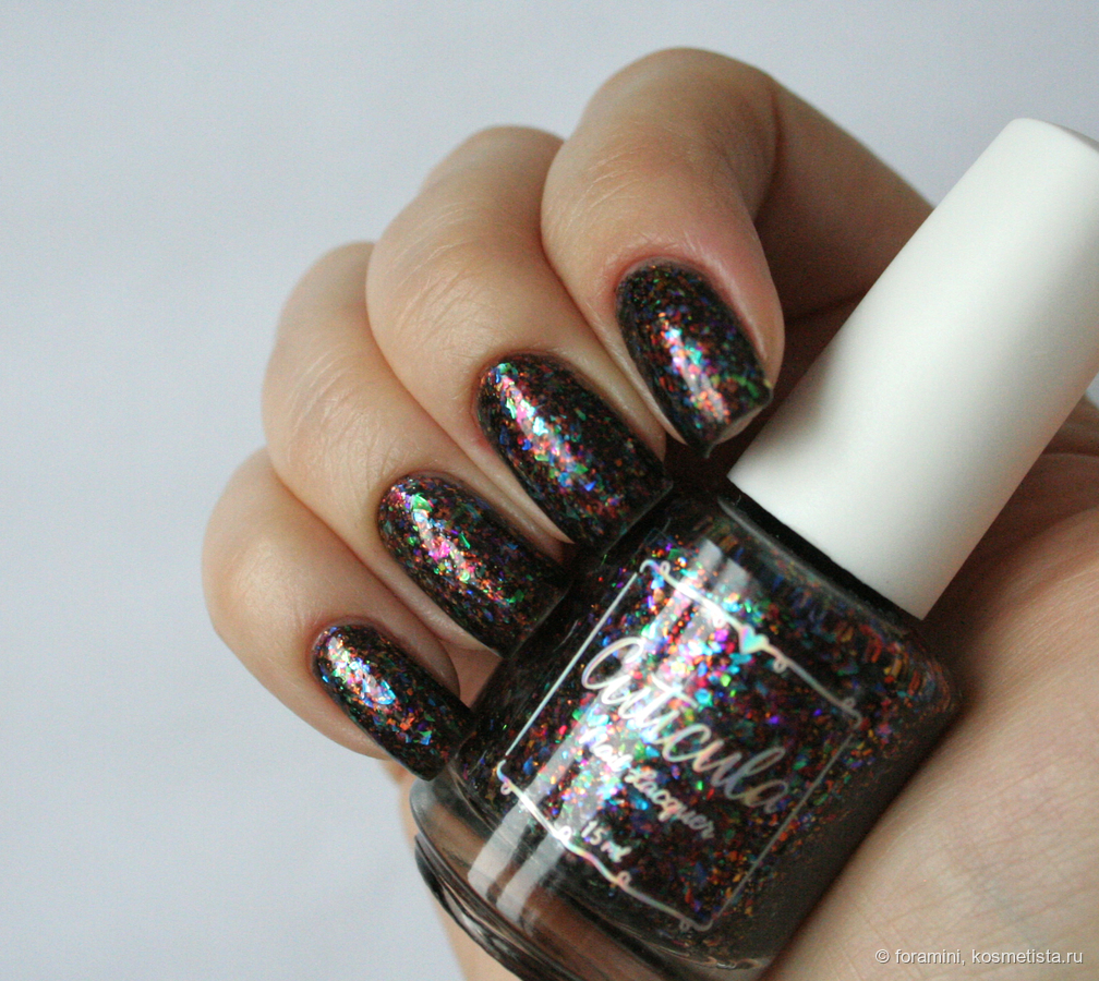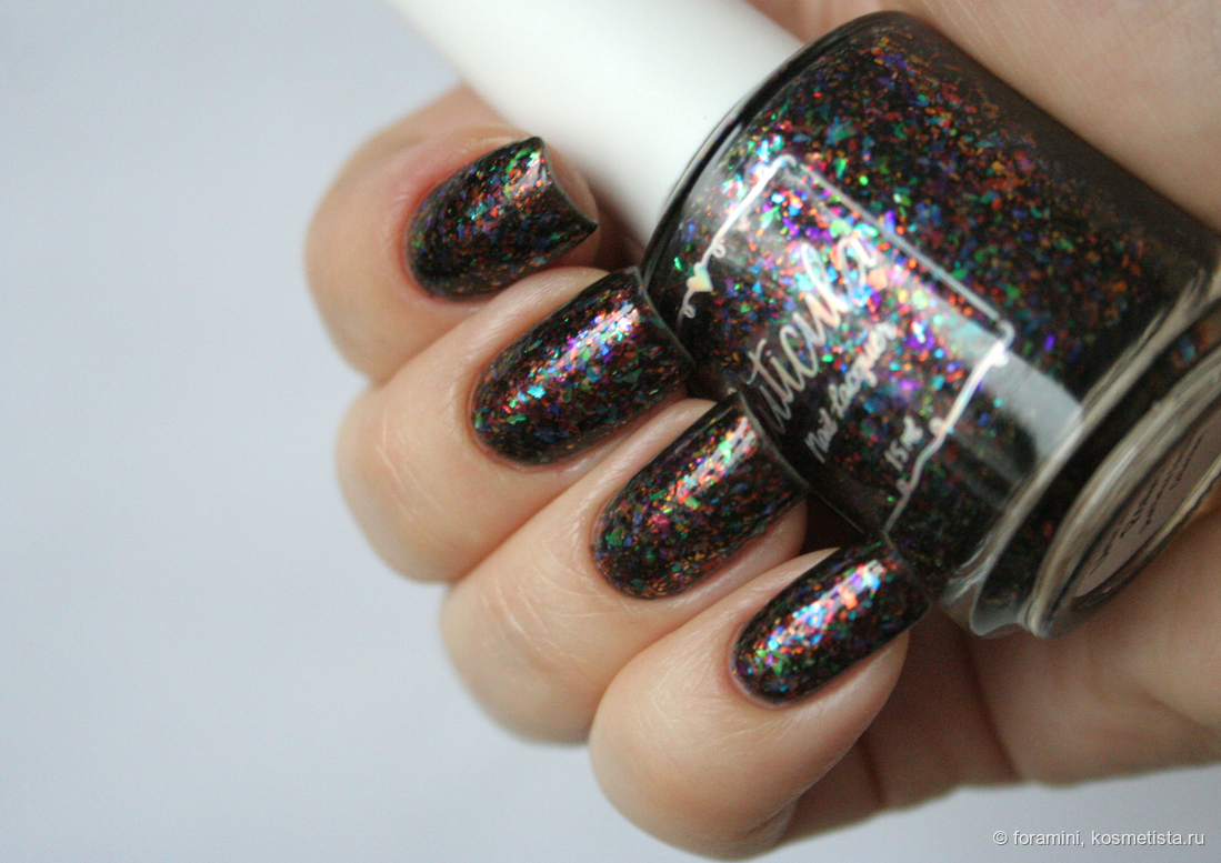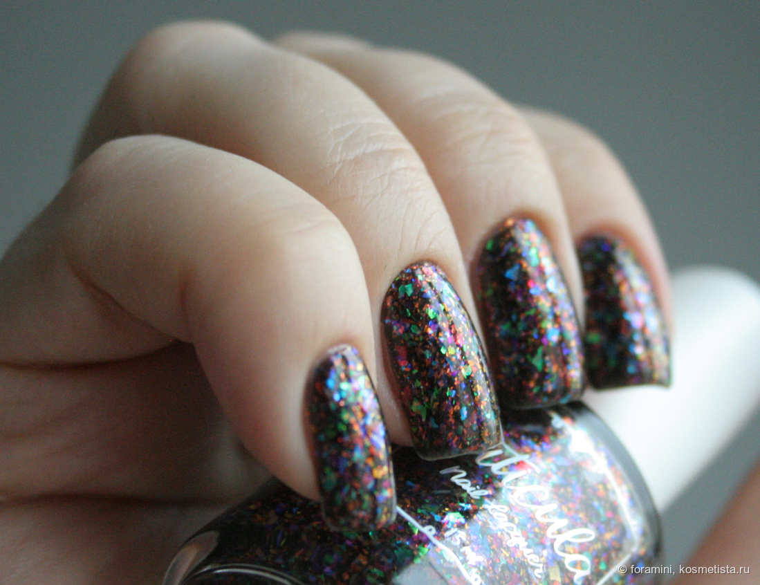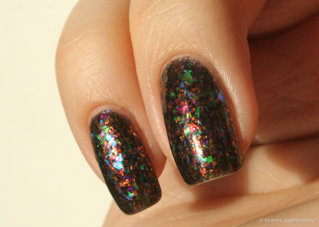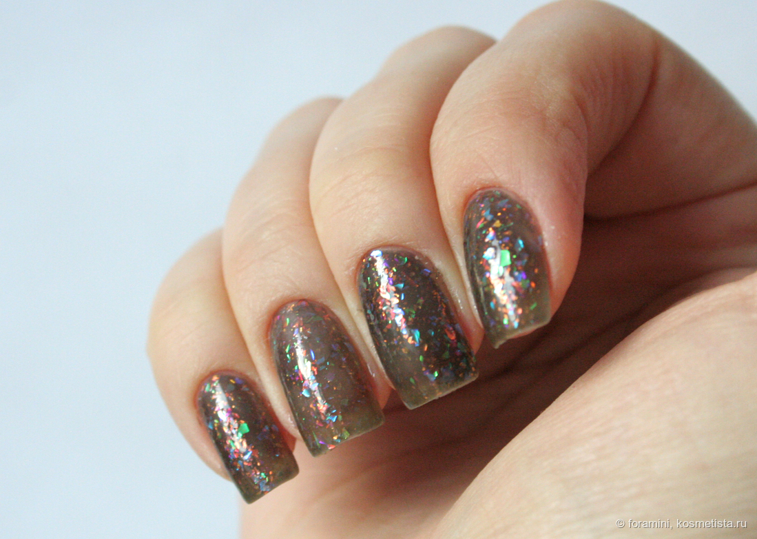 Сверху темных лаков можно красить этот лак в качестве топа, сделает базу темнее, но слюда здесь красивая.
