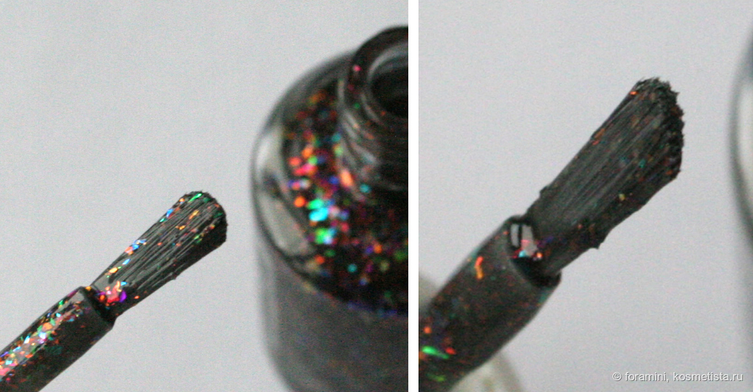 База лака — черное желе. В базе наполнение из разноцветной слюды.