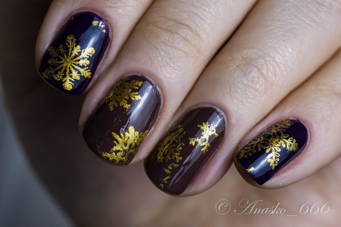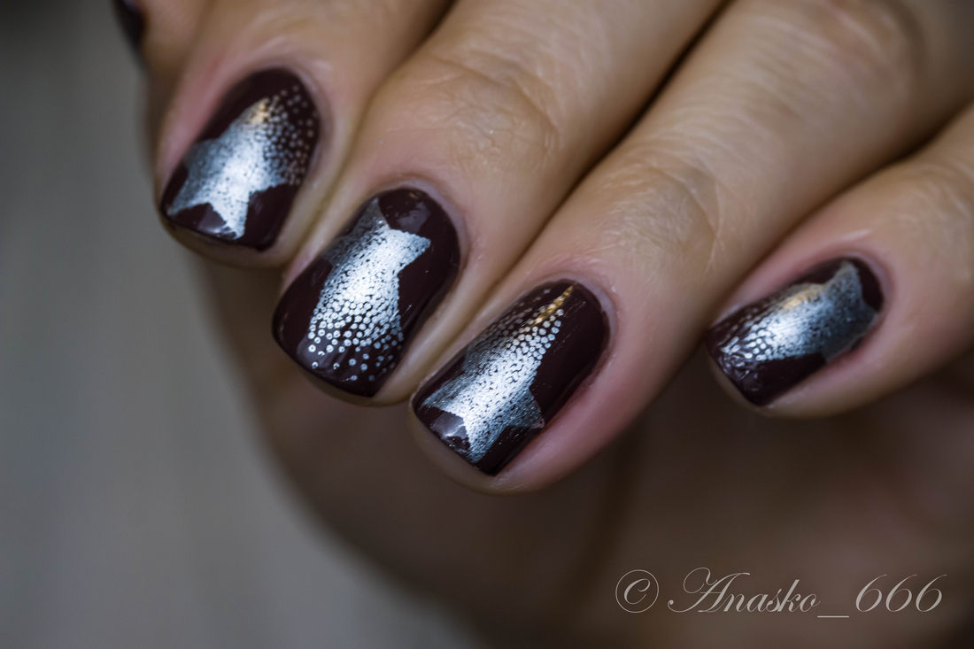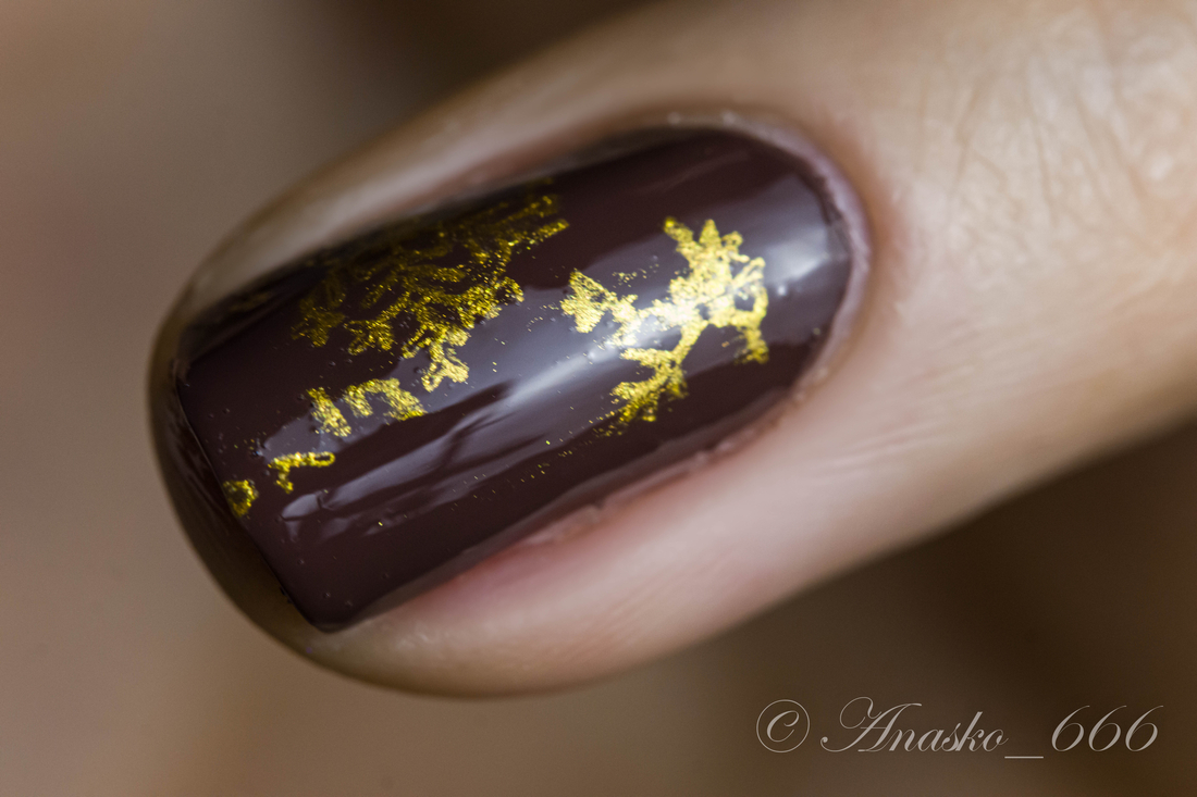Шоколодно-коричневый лак, в бутыльке чуточку светлее и теплее, чем в итоге получаем в маникюре.